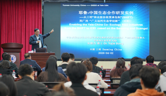 4月2日,耶鲁大学资深生态环境学者、美国全球环境可持续发展研究所所长宋雅杰研究员到访三明学院,作题为《耶鲁—中国生态合作研发实例——从三明“林业股份租赁承包制”到广西“广义运河生态学创新”》的学术报告。报告由三明学院副校长吴龙主持,相关院系师生代表现场聆听。