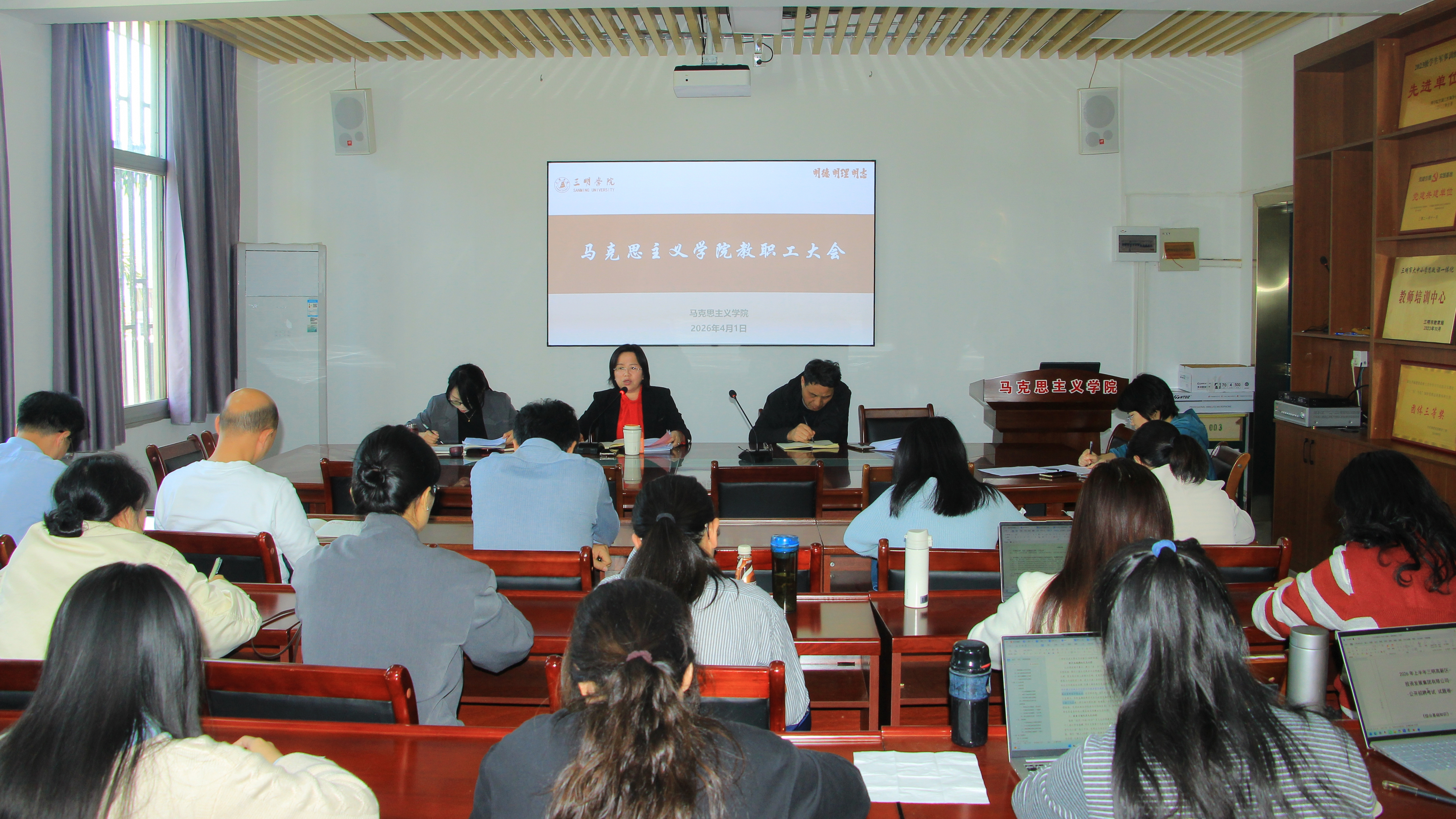 4月1日下午,马克思主义学院在明德楼二306会议室召开全体教职工大会。会议由院长徐桂兰主持,学院全体人员参加会议。