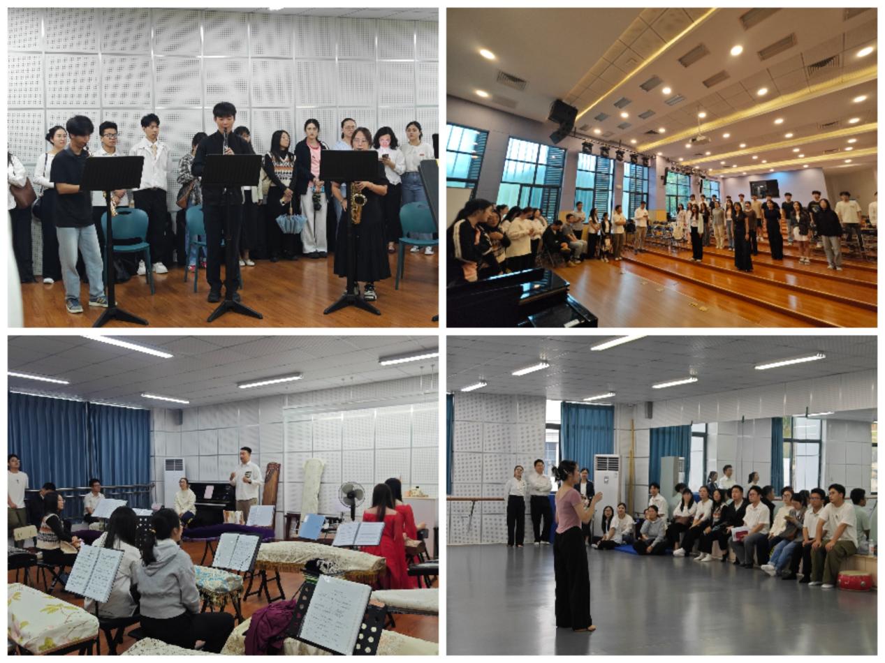 活动伊始,与会人员参观了管乐、民乐、合唱、舞蹈等美育社团的排练场地,并观摩了学生社团的精彩展演,现场感受了美育活动的感染力与育人成效。随后,教育与音乐学院辅导员代表作了美育工作专题汇报,分享了学院在美育实践中的探索与思考。