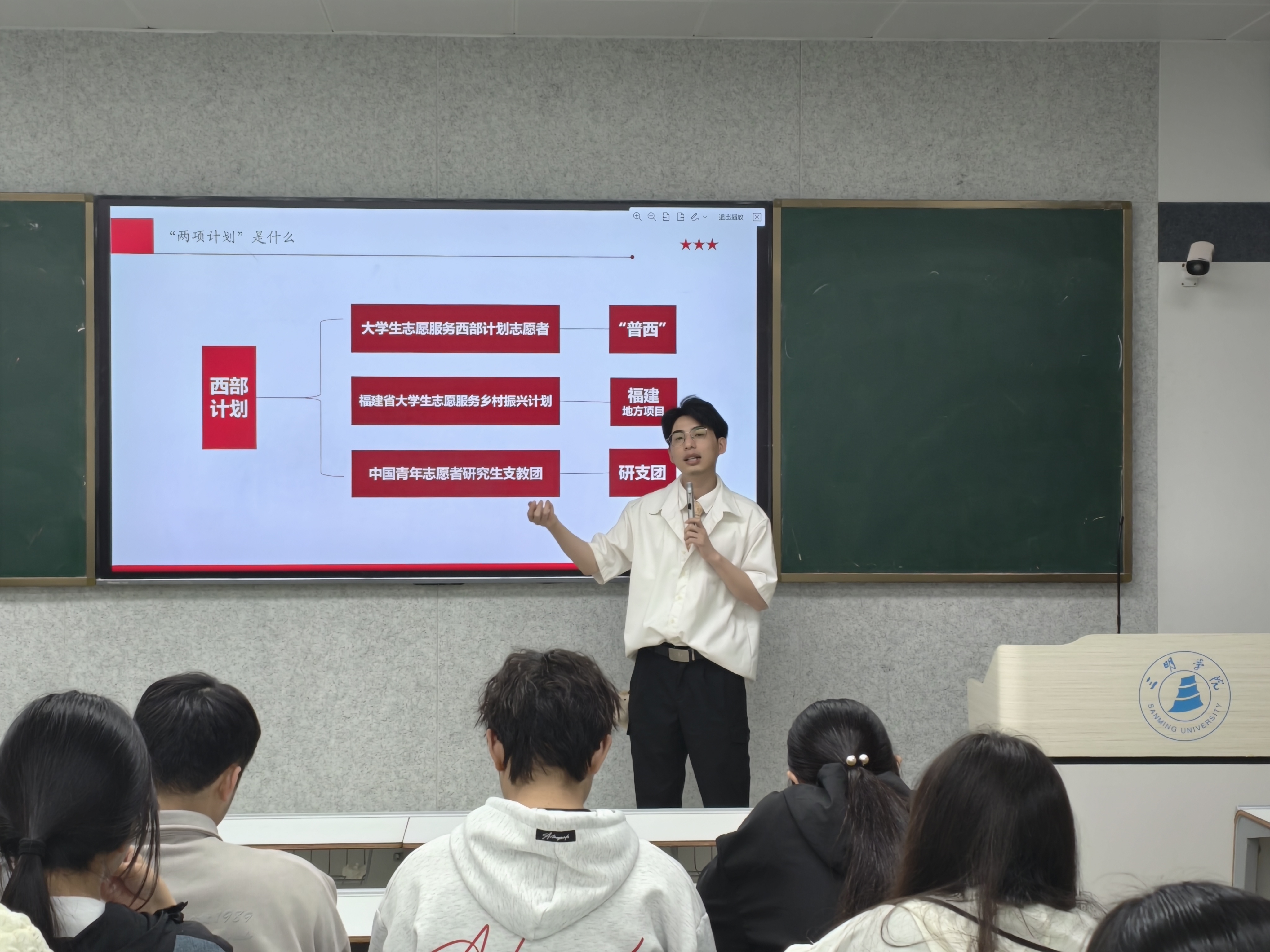 青春筑梦基层,服务点亮未来。为贯彻落实团中央“共青团促进大学生就业行动”有关部署和工作要求,进一步宣传服务基层优秀西部计划志愿者先进典型,引导青年学子投身基层、服务国家战略,4月23日晚,文化传播学院在博学楼203举办西部计划、福建省大学生志愿服务乡村振兴计划政策专题宣讲会。