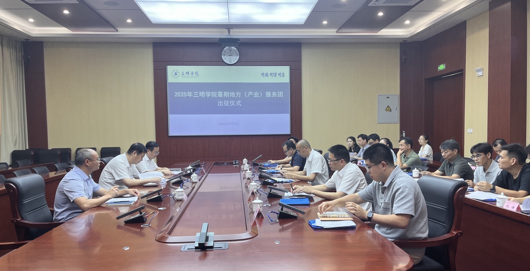 7月2日下午,三明学院举行2025年暑期地方(产业)服务团出征仪式。校党委委员、副校长吴龙出席出征仪式并讲话,社会合作处、科技处(社科处)、各暑期地方(产业)服务团项目负责人参加出征仪式。