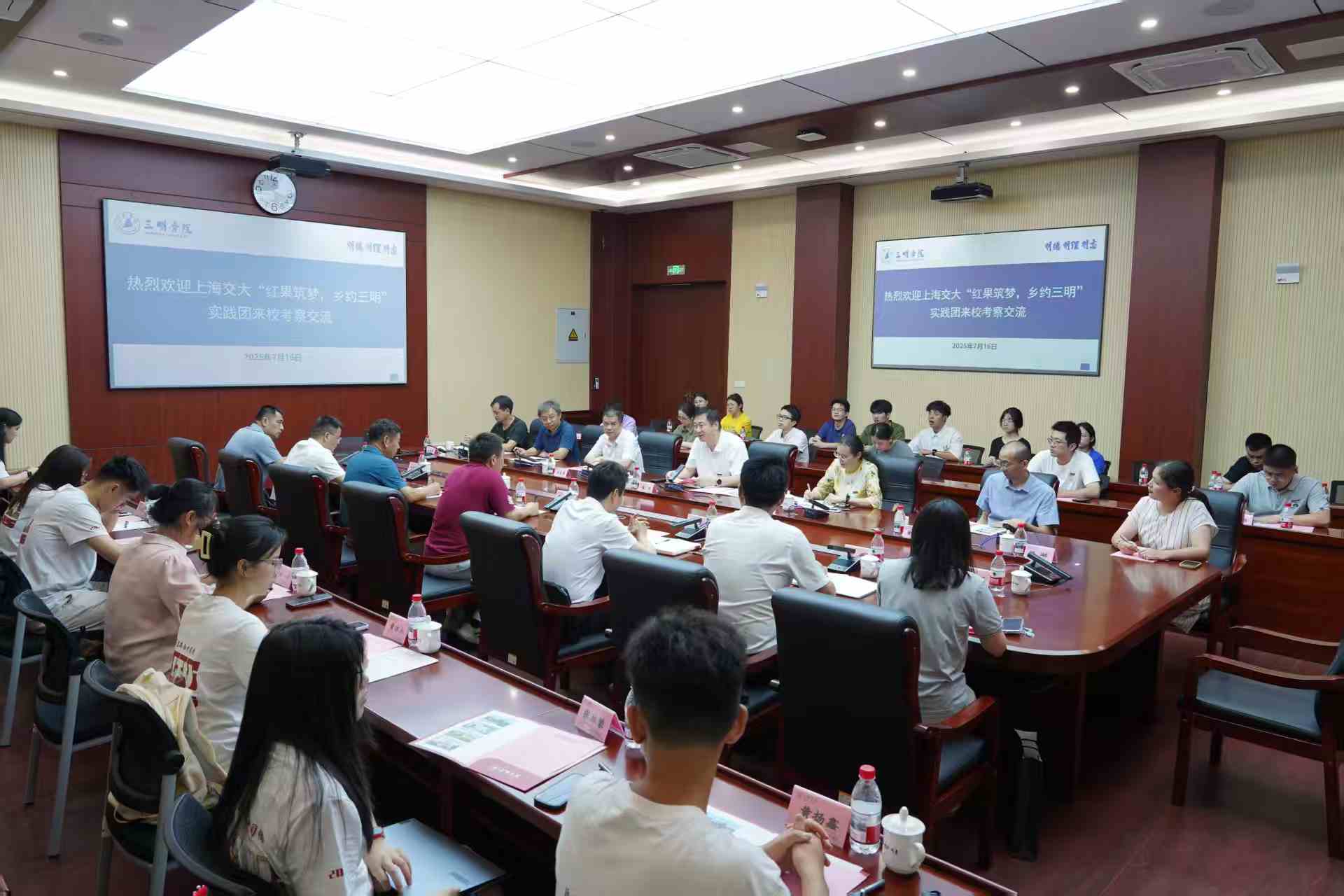 7月16日,上海交通大学农业与生物学院党委副书记李文纯、新农村发展研究院副院长蔡保松带领“红果筑梦 乡约三明”实践团到校考察交流。三元区委常委、组织部部长陈一龙,副区长詹先辉,洋溪镇党委书记龚䶮、人大主席邓巍,资源与化工学院相关负责人陪同,三明学院党委委员、副校长吴龙参加座谈。