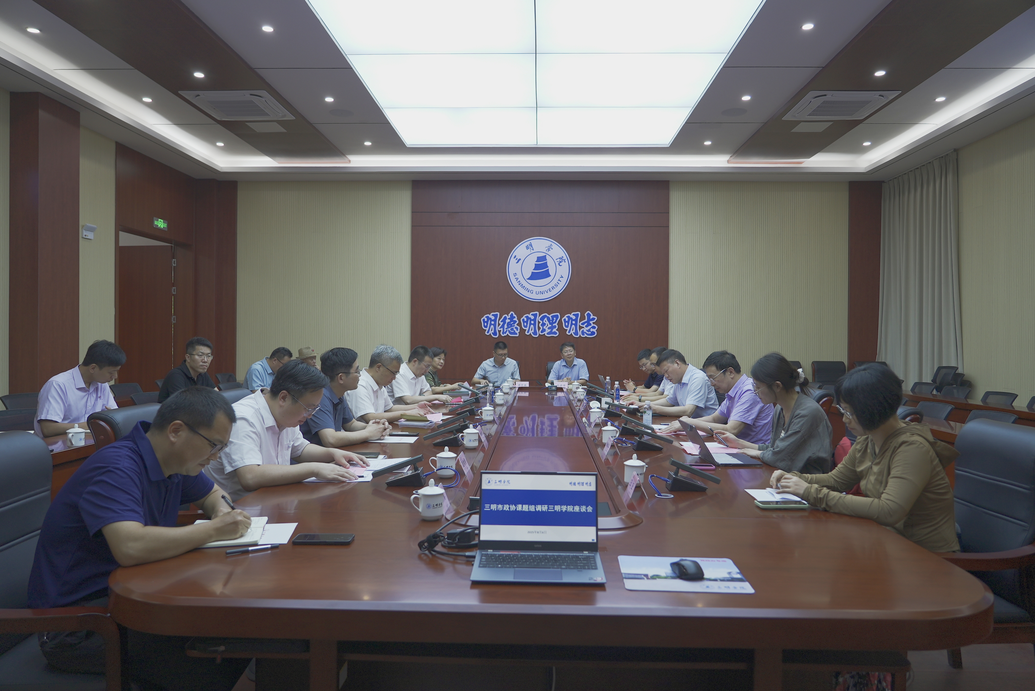 8月6日下午,三明市政协课题组来校调研沪明高校交流合作工作。三明市政协党组副书记、副主席罗金水,三明市政协智库专家、华东师范大学城市发展研究院院长、终身教授曾刚,校党委副书记、校长张君诚出席调研座谈会。校党委副书记廖景榕陪同调研并主持座谈会。