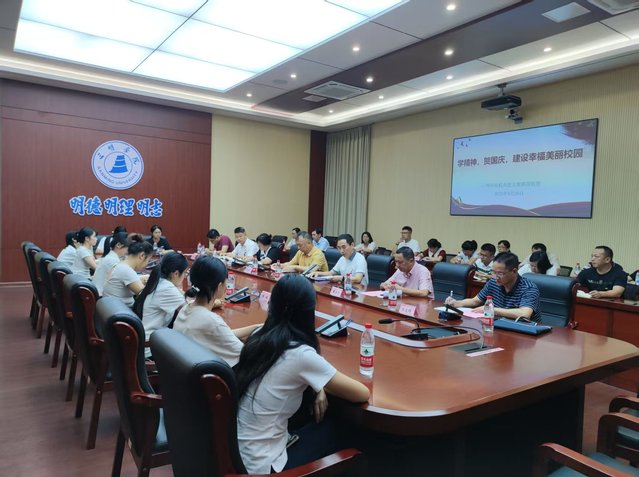 9月29日下午,机关党支部第四组团在第二会议室举办“学精神,贺国庆,建设幸福美丽校园”主题党日活动,第四组团全体党员、紫荆园1号楼“一站式”社区师生代表等66人参加座谈交流活动。活动由组团召集人、纪检监察室党支部书记黄建总同志主持。