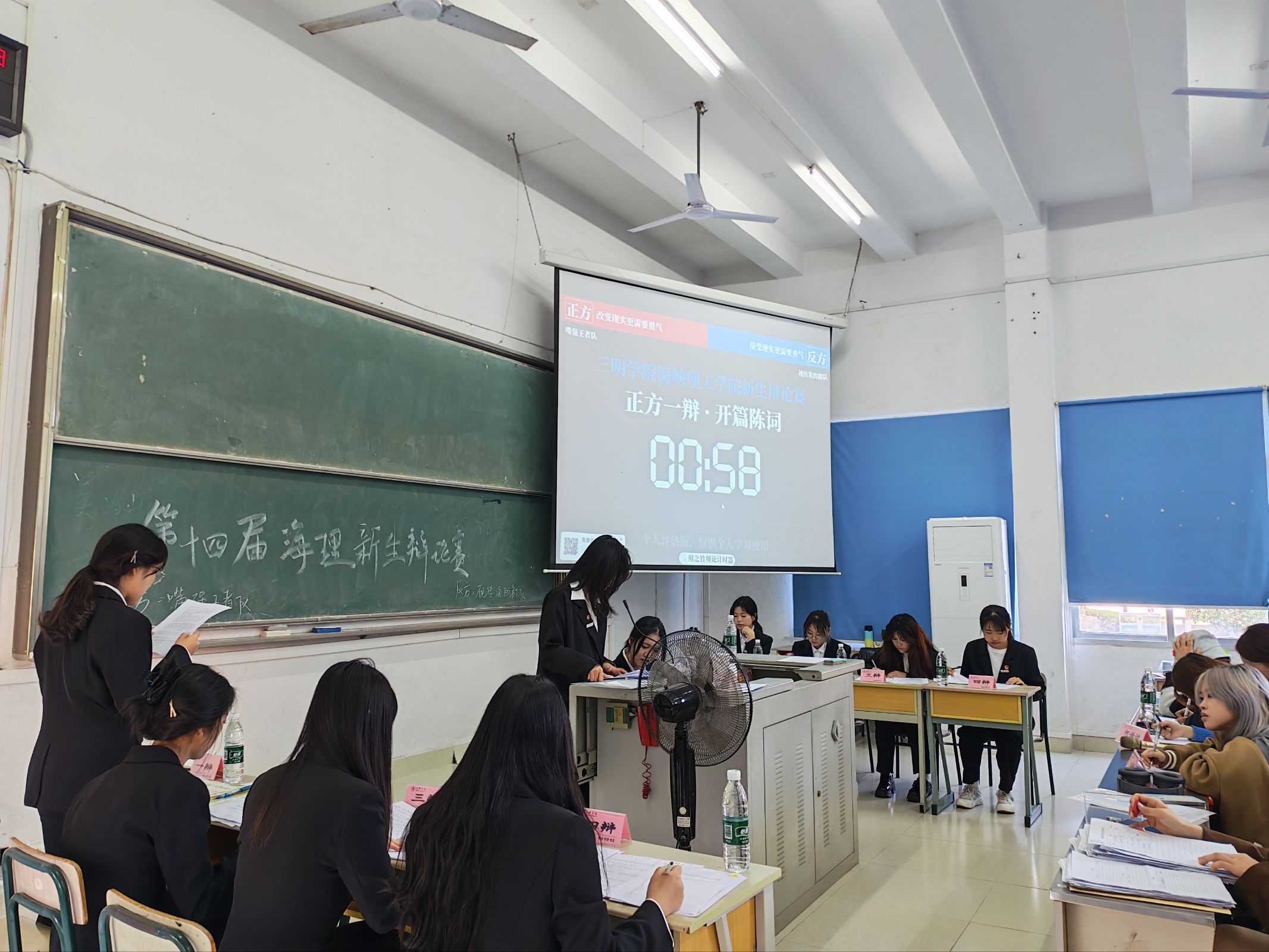 为丰富校园文化生活,加强学生心理健康教育,锤炼学子思辨锋芒与沟通智慧,12月7日下午,海峡理工学院第十四届新生辩论赛决赛在鸿文楼101教室圆满举行。历经初赛、半决赛的层层筛选,25级环境设计2班“嘴强王者队”(正方)与25级视觉传达2班“视传说得都队”(反方)脱颖而出,围绕“改变现实/接受现实更需要勇气”这一心理健康主题辩题展开巅峰对决。