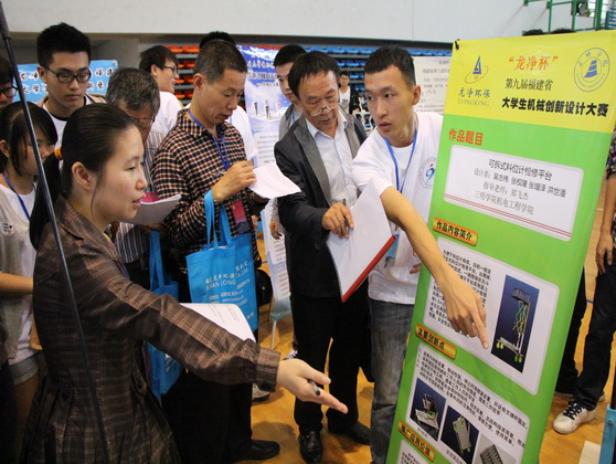 本次比赛由福建省教育厅、福建省大学生机械创新竞赛组织委员会、福建省高等院校机械原理及机械设计教学研究会主办,522日至24日在福州大学承办,吸引了省内16所院校共286个作品参与角逐。此次大赛以“同一个地球,同一片蓝天”为主题,环保设备的设计与制作为内容。