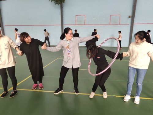女老师们三个队开展比拼先后进行了你画我猜、牵手穿越呼啦圈以及个人呼啦圈三个项目。大家积极参与,团结协作,加油呐喊声此起彼伏,充满了欢声笑语。