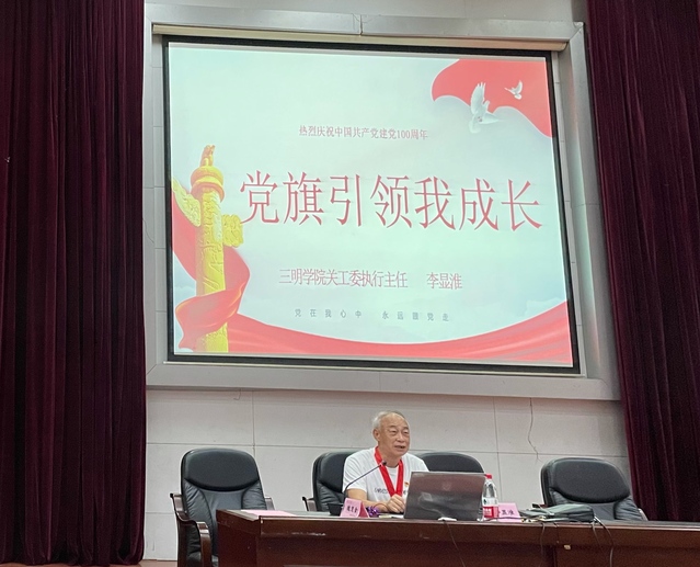 为庆祝中国共产党成立100周年,6月30日,机电工程学院邀请了光荣在党50年的老党员李显淮,在行政楼附楼报告厅给师生党员上了一堂生动的党课。现场还有来自机关党委科研处党支部、发展规划处党支部,信息工程学院、体育与康养学院的师生党员,近400人齐聚一堂。