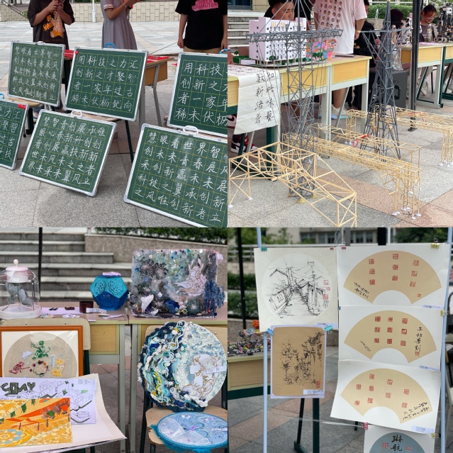 艺术作品《绣球花》、《道成》、《带着珍珠耳环的少女》、《丝绸之路》,手工作品《虎》,以《虎》庆虎年,以“志”照春威。各种书画琳琅满目,以书画形式表达“奋进青年 科技创新”主题。
