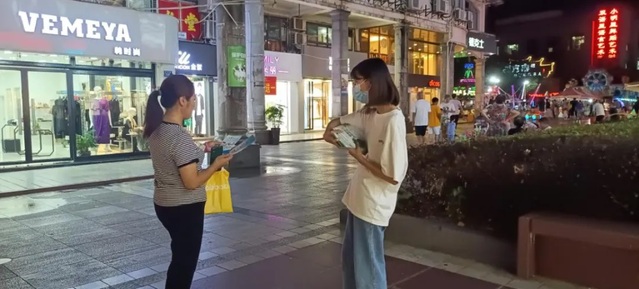 “为了完成此次禁毒防艾的活动,我们积极的搜集有关禁毒防艾的资料,充分的利⽤⽹络资源,在⽹上查找有关禁毒防艾的资料,把查找到的资料进⾏综合整理,自己在其中也学到了很多之前不知道的知识。我们通过多次给居民讲解禁毒防艾的知识,加深了自身及居民对毒品和艾滋病的认识,包括毒品艾滋病对⼈类的危害,以及怎么拒绝毒品和预防艾滋病的⽅法。”20级电子科学与技术 林鋆沛满怀成就说道。