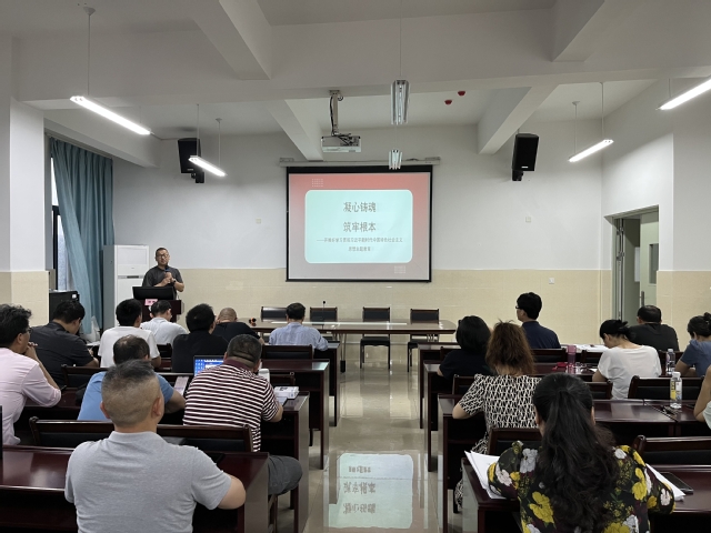 读书班邀请马克思主义学院思政课教师苗圃作《凝心铸魂筑牢根本——开展好学习贯彻习近平新时代中国特色社会主义思想主题教育》专题讲座。苗圃博士从深刻理解开展主题教育的重要意义、科学理解主题教育的总要求和根本任务、如何使主题教育走深走实、大兴调查研究之风、落实好工作责任制,这五个方面深入浅出地讲述了主题教育的深刻含义,对学院开展主题教育具有非常好的指导作用。