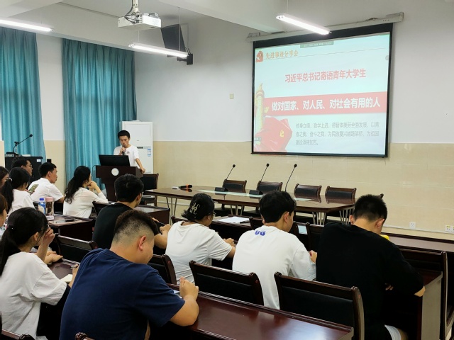 “人的一生如果有机会一定要去军营锻炼一次,在那里,你才能展现你的爱国情怀;在那里,你才知道什么是辛苦;在那里,你才知道为什么有国才有家……”退伍学生党员分享了自己在军营的生活,把最后的收获归为几句话送给大家,希望同学们勇于吃苦,敢于担当,珍爱和平,对党忠诚。