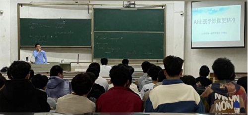 讲座中,宁医生从AI技术在医学方面的应用、医学影像AI技术流程和应用实例展开了阐述,强调了AI在医学设备、工业设备等各个领域的重要性,让学生们进一步体会到我们就是未来人工智能的创造者,引导学生们在实践中思考这些技术对人类生活,尤其是健康医疗带来的帮助及影响。