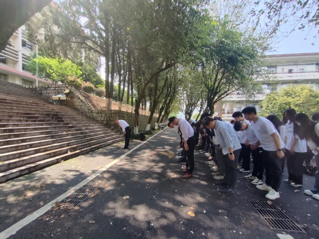 全体师生在曹云露教授的雕像前肃立,默哀致敬,用最深切的哀思和崇高的敬意,传达对曹云露教授的深切缅怀。整个仪式庄重而肃穆,师生们的脸上写满了哀思和怀念。师生们依次向雕像献花,用鲜花表达了对教授的深切怀念和无尽哀思,也表达了对未来的坚定信念和美好期许。