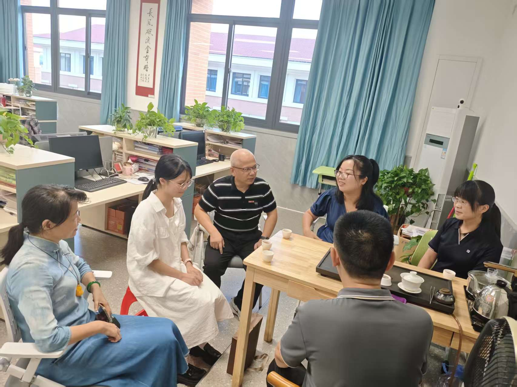 座谈交流中,实习学校负责人对陈礼炜教授一行表示热烈欢迎,系统介绍了实习生参与课堂教学、班级管理以及课外活动组织等方面的具体表现,充分肯定了他们态度认真、基本功扎实、适应能力强的扎实素质。随后,双方骨干教师围绕新时代教育改革趋势、师范生就业现状与挑战、协同育人模式创新等议题展开深度对话,就“双师型”教师培养、课程共建、实习实训标准化等方面交换了意见。