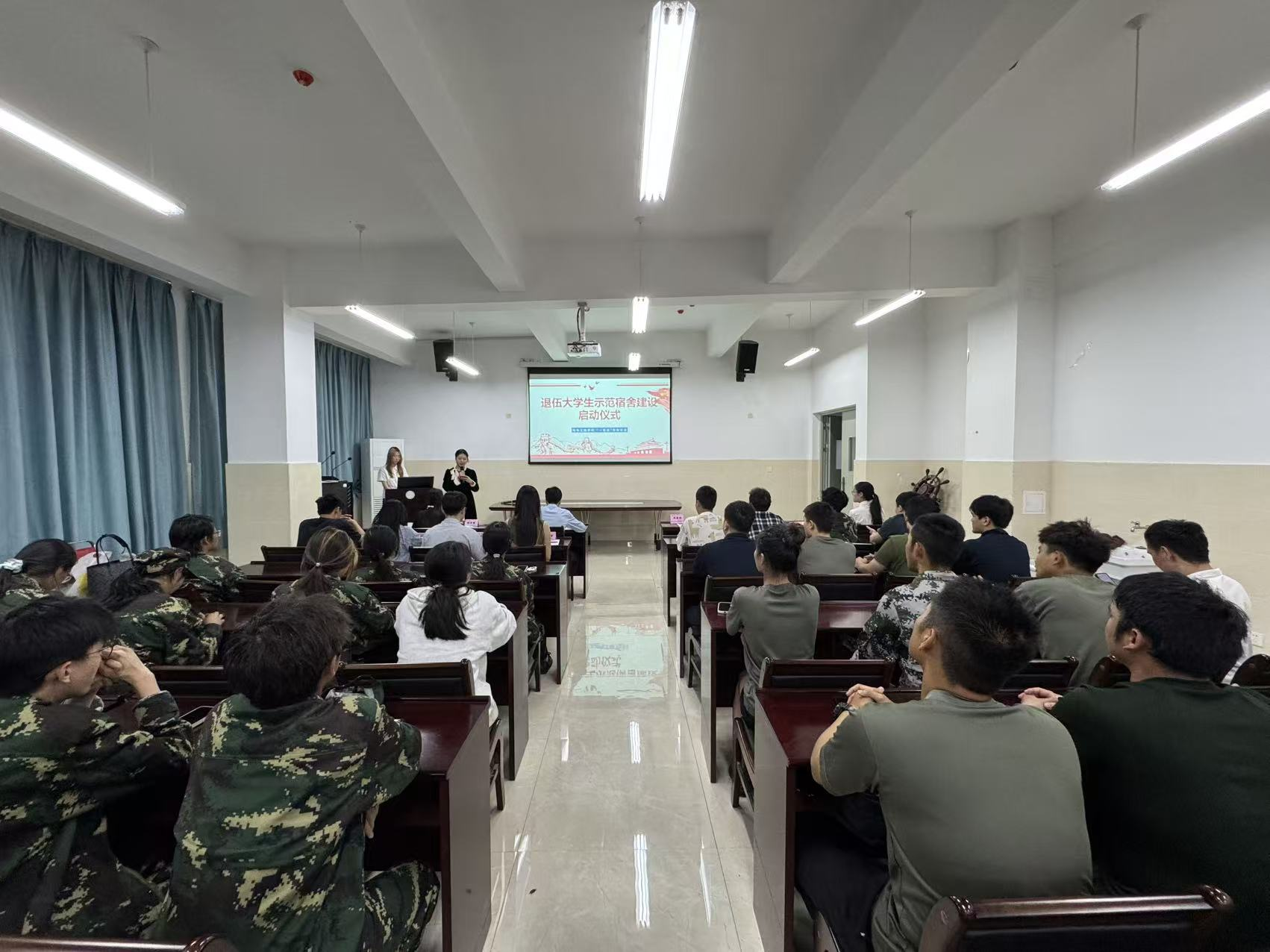 启动仪式在庄重而热烈的气氛中拉开序幕。会上共同观看了军旅题材纪录片,宣读了学院首批“退伍大学生示范宿舍”建设名单及新生内务整理指导员名单,并依次进行授牌与聘书颁发。退伍大学生代表在发言中深情回顾军旅生涯的成长与收获,郑重承诺将以实际行动建设好示范宿舍,同时向全院同学发出共建文明宿舍、涵育优良学风的倡议。