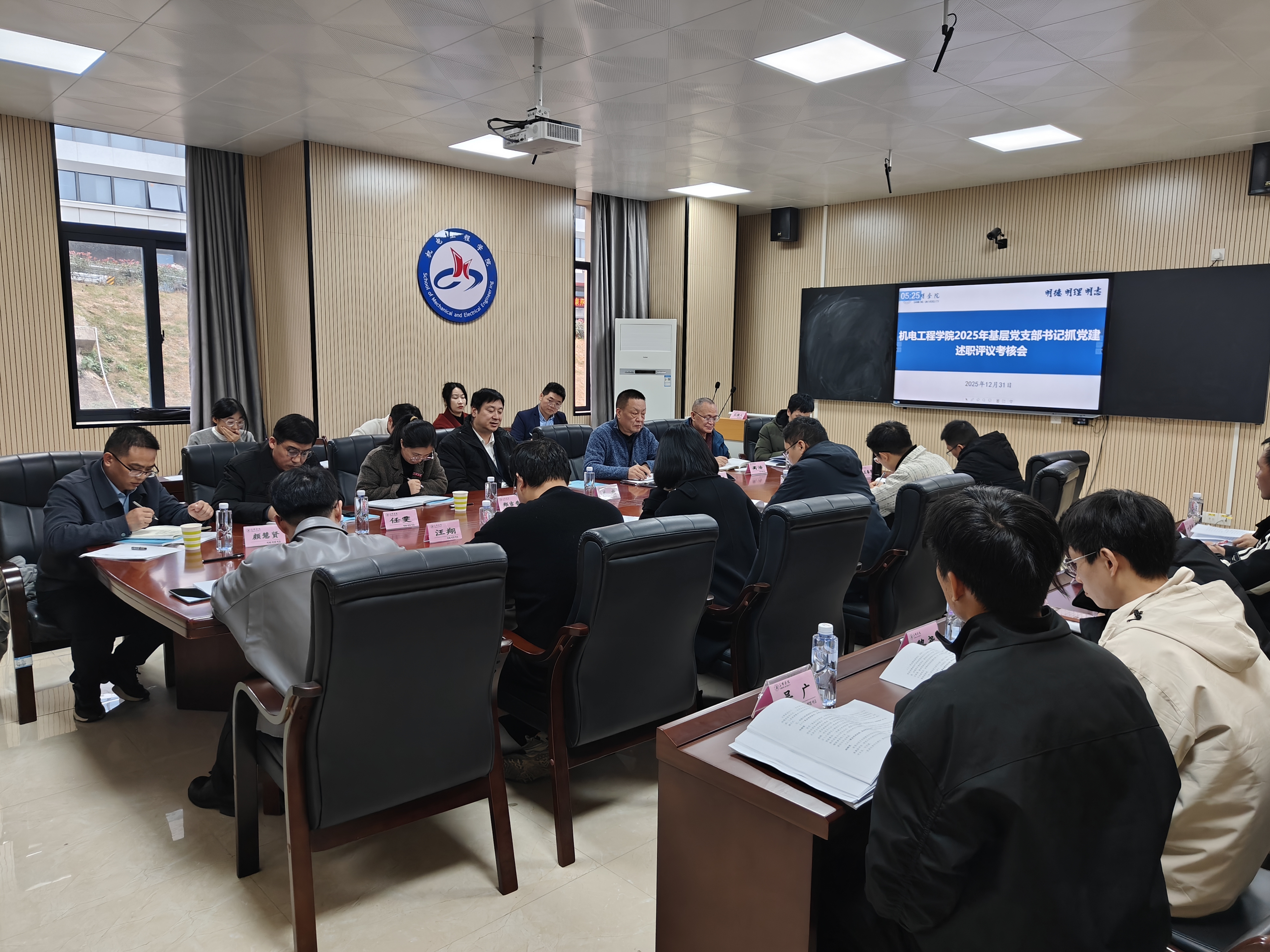 12月31日,机电工程学院党委组织召开2025年度基层党支部书记抓党建工作述职评议会。校党委委员、副校长吴龙出席会议,校党委组织部有关同志到会指导,学院党委领导班子、各党支部书记及师生代表共20余人参加会议。会议由学院党委书记主持。