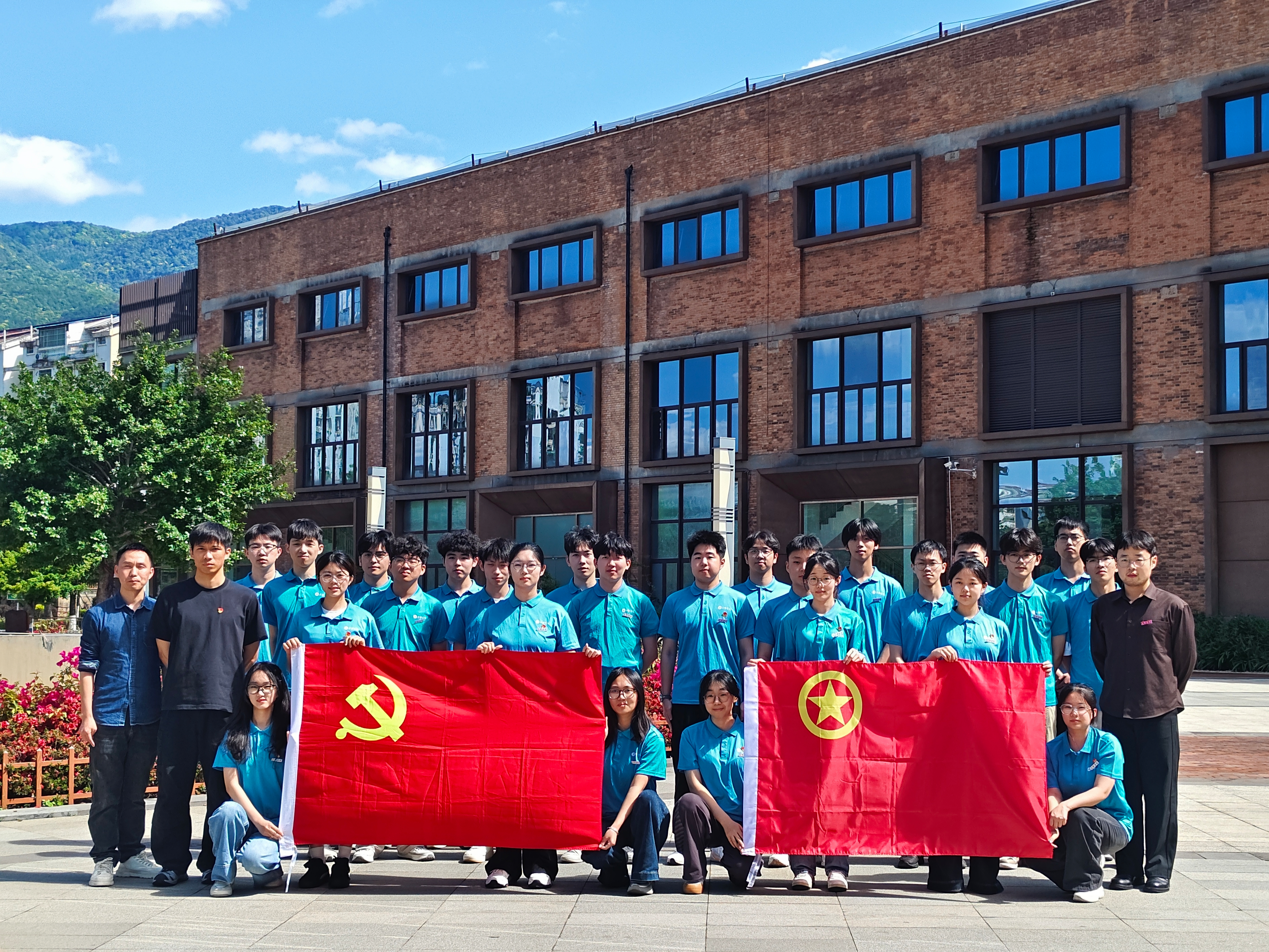 在“1958”雕塑前,全体党员面对党旗重温入党誓词,铮铮誓言在红砖厂房间久久回荡。团员代表和班级骨干肃立一旁,感受信仰的洗礼。随后,电子信息工程学生党支部书记黄培雨讲授微党课,结合三钢建设者筚路蓝缕的奋斗历程,阐释树立和践行正确政绩观的深刻内涵。他指出,机电学子唯有不尚空谈、不务虚功,把专业本领扎扎实实用在祖国大地上,方能不负时代。1958年,厦大中文系200多名学生放下书本、拿起镐头,为三明炼出第一炉钢水——这份实干报国的赤子之心,正是今天机电青年最宝贵的精神财富。