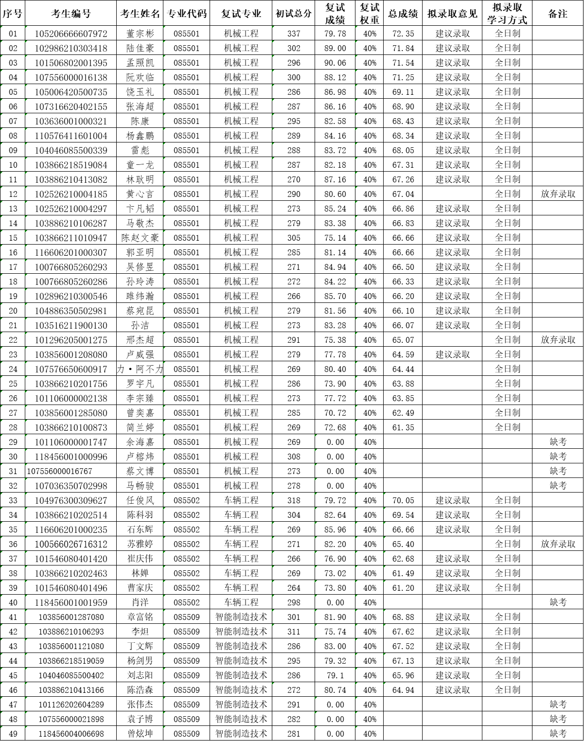 注:初试成绩以百分制折算,总成绩=初试总分(折合成百分制)×60%+复试成绩(百分制)×40%