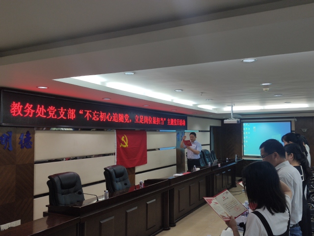6月22日下午,教务处党支部在四楼会议室开展“不忘初心追随党,立足岗位显担当”主题党日系列活动,张君诚副校长以“新中国应用性高等教育人才培养的考察”为题,为分管部门党支部讲授党史学习教育专题党课。