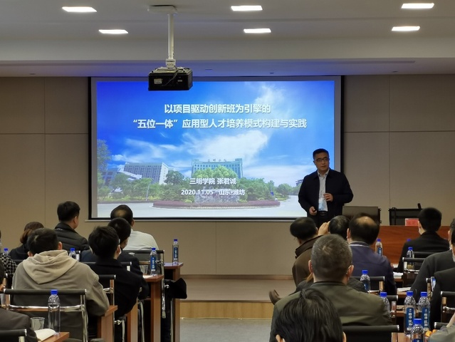 张君诚以“以项目驱动创新班为引擎的‘五位一体’应用型人才培养模式构建与实践”为题,从三明学院应用型人才培养改革历程、“五位一体”人才培养模式设计与运行、“五位一体”人才培养模式实践与成效三方面展开报告。他指出,三明学院通过创设项目驱动创新班,并以此为引擎,构建专业群、产业学院、应用型教学团队和课程有机协同的“五位一体”应用型人才培养新模式,有效提升了应用型人才培养能力和质量。