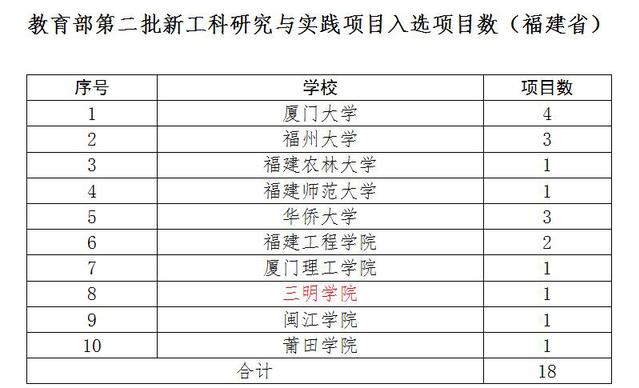 新工科研究与实践项目是教育部主动应对新一轮科技革命和产业变革,服务国家战略和区域发展需求,推动高校新工科建设再深化、再拓展、再突破、再出发而设立的本科教学改革研究项目,对高校推进双万计划建设、实现学科专业内涵建设和特色化发展具有重要意义。据悉,全国有363所高校的845个项目获批教育部第二批新工科研究与实践项目,福建省共有10所高校的18个项目入围。