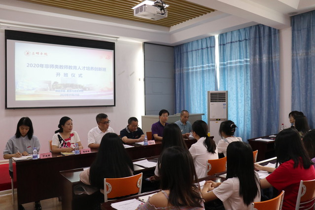 为进一步贯彻落实三明市政府《关于进一步加强和改进师范生培养的九条措施》文件精神,在短期内缓解地方师资紧缺问题,根据《三明学院关于进一步加强师范生培养工作要点》,经过精心筹划,9月20日上午,在理工一224会议室举行非师类学生师范教育项目驱动创新班开班仪式。我校副书记赖锦隆、副校长张君诚,教务处、师范学部、创新班教师代表及全体学员参加了仪式,仪式由师范学部常务副主任张新文主持。