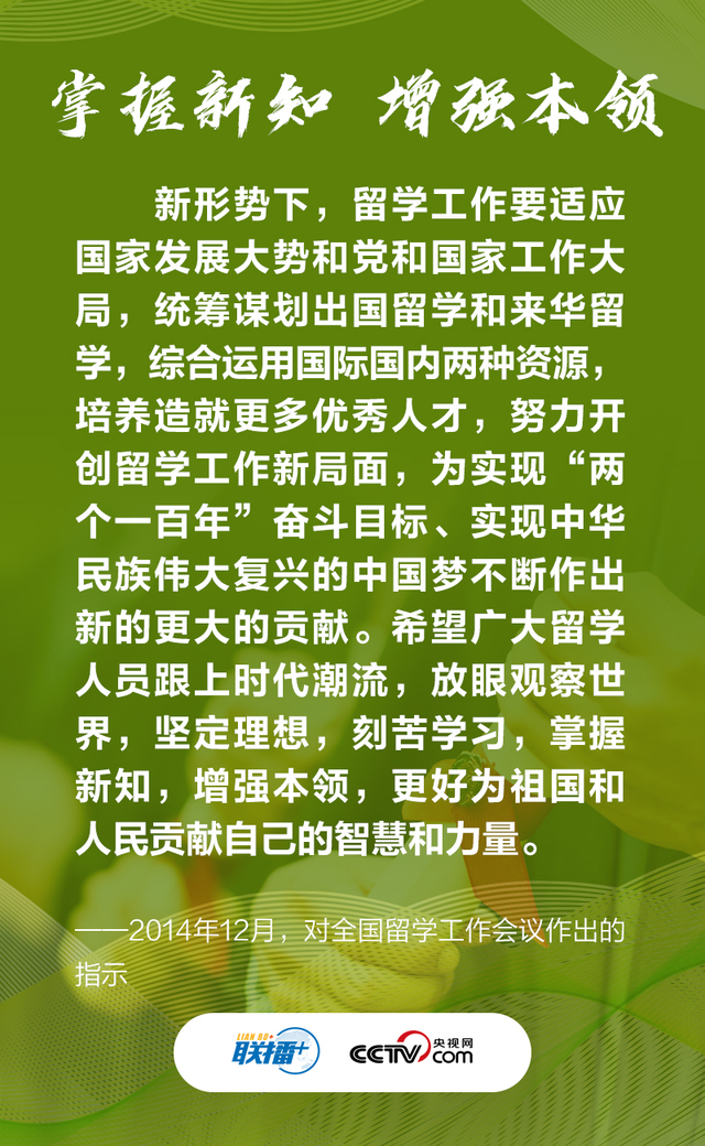 央视网《联播+》特梳理总书记对广大留学人员的谆谆寄语,与您一起学习。