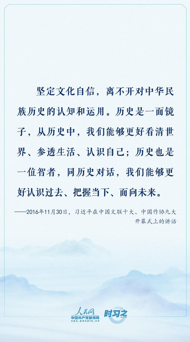 习近平总书记在主持中共中央政治局第三十九次集体学习时强调,“推动全党全社会增强历史自觉、坚定文化自信,坚定不移走中国特色社会主义道路,为全面建设社会主义现代化国家、实现中华民族伟大复兴而团结奋斗。”源浚者流长,根深者叶茂。习近平曾在多个场合反复强调增强历史自觉、坚定文化自信,为实现中华民族伟大复兴注入强大的精神动力。