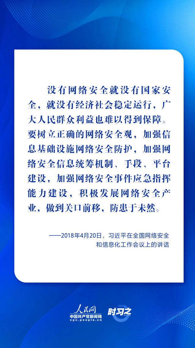 “没有网络安全就没有国家安全,就没有经济社会稳定运行,广大人民群众利益也难以得到保障。”习近平总书记始终高度重视网络安全工作,在推动建设网络强国的过程中,“人民”二字贯穿始终。