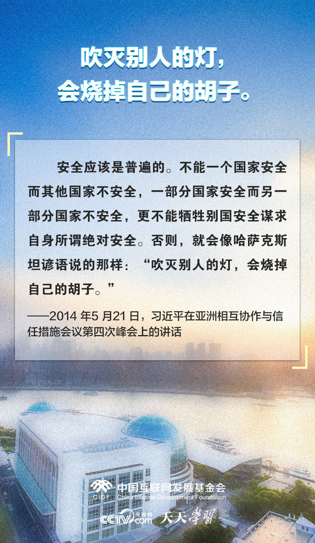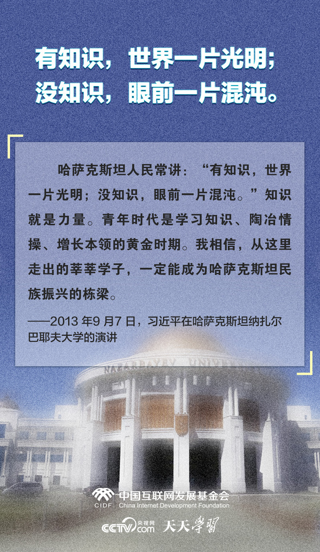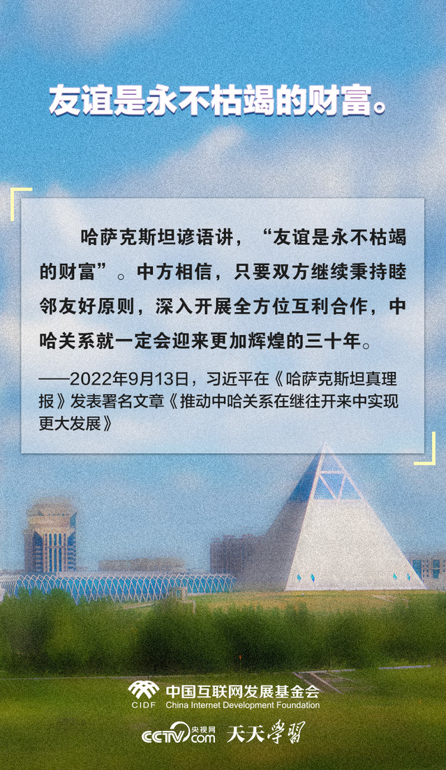 在外交场合中,习近平主席多次引用哈萨克斯坦充满智慧和哲理的谚语,谈合作、叙友谊、谋发展、话未来,进一步拉近了中哈两国人民之间的感情。央视网《天天学习》栏目特撷取其中经典,与您一起学习领会。