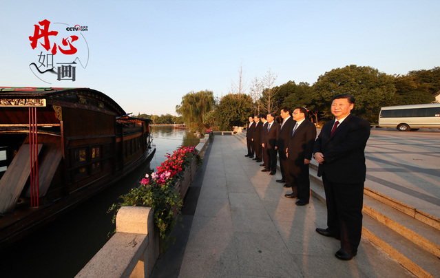 2017年10月31日,习近平等从上海来到浙江嘉兴南湖边,瞻仰复建的南湖红船,并参观了南湖革命纪念馆。