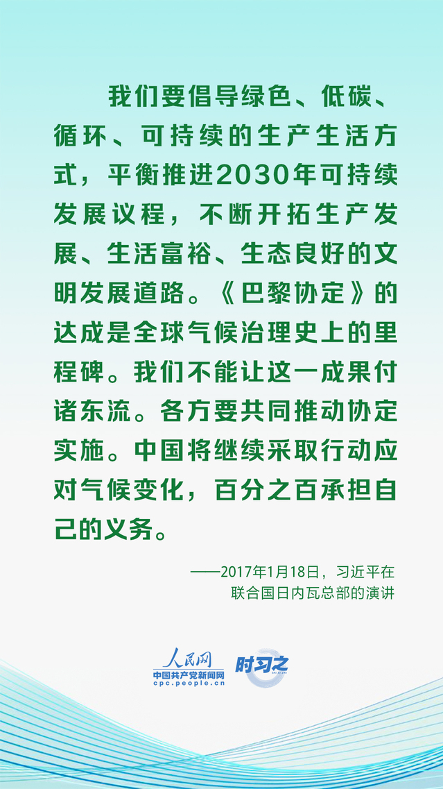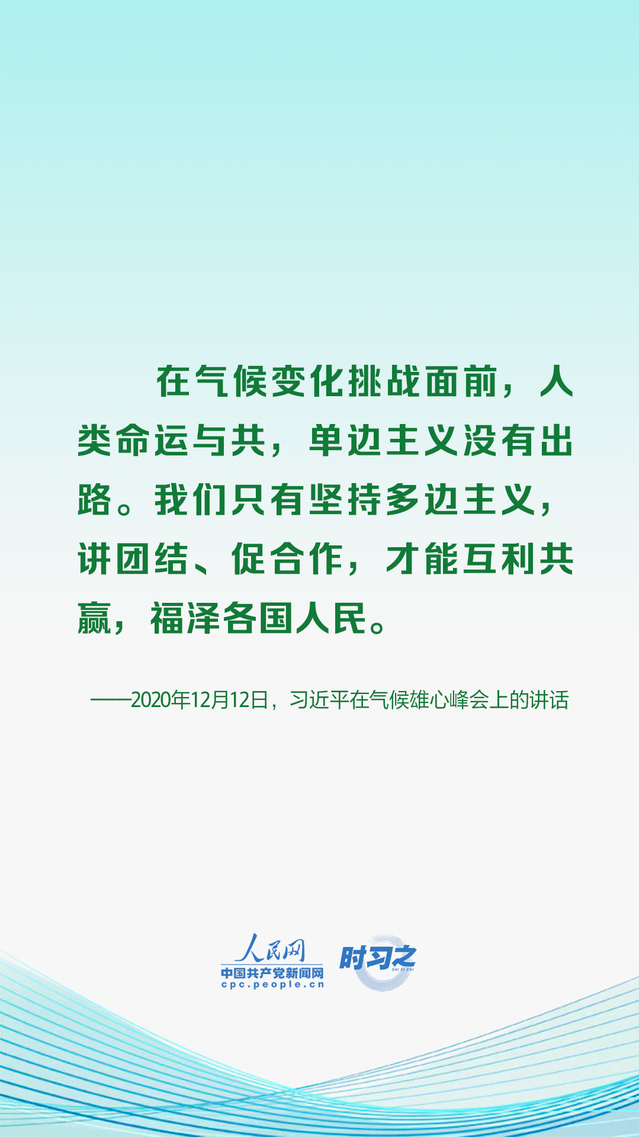 “地球是个大家庭,人类是个共同体,气候变化是全人类面临的共同挑战,人类要合作应对。”面对生态环境挑战,习近平主席站在人类可持续发展的高度,提出一系列重要倡议和主张,推动各方维护多边共识、聚焦务实行动、加速绿色转型,为共同建设清洁美丽的世界注入信心和力量。