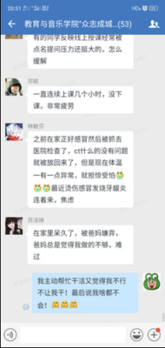 “云团课”结束后,教育与音乐学院团委书记苏庆雪表示:“在疫情形势严峻复杂的关键时期,我们依然不能掉以轻心,在关系学生身体健康的同时,更要保证学生的心理不出问题,团员青年们将在磨难中成长,在磨难中奋起,学院将与他们携手共同度过这段艰难困苦时期。”