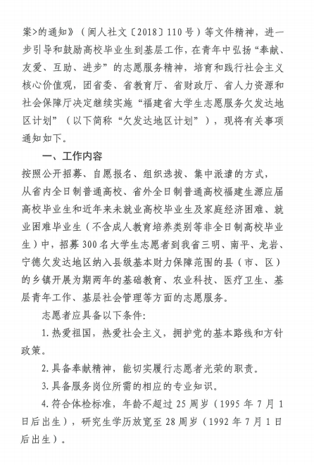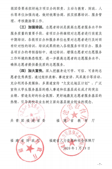 关于做好2020年福建省大学生志愿者服务欠发达地区计划工作的通知