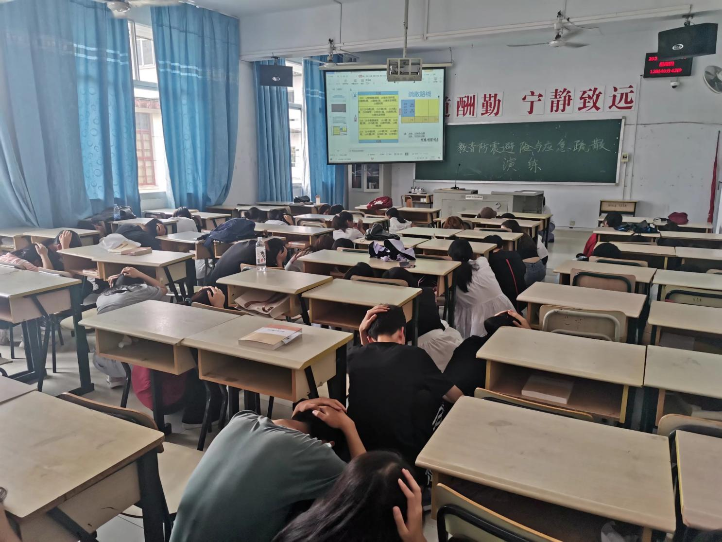 活动伊始,参与演练成员首先到达教室观看防震避险相关视频,学习应急疏散知识,学生讲解员为大家普及有关知识和技巧,为之后的演练打下坚实的理论基础。