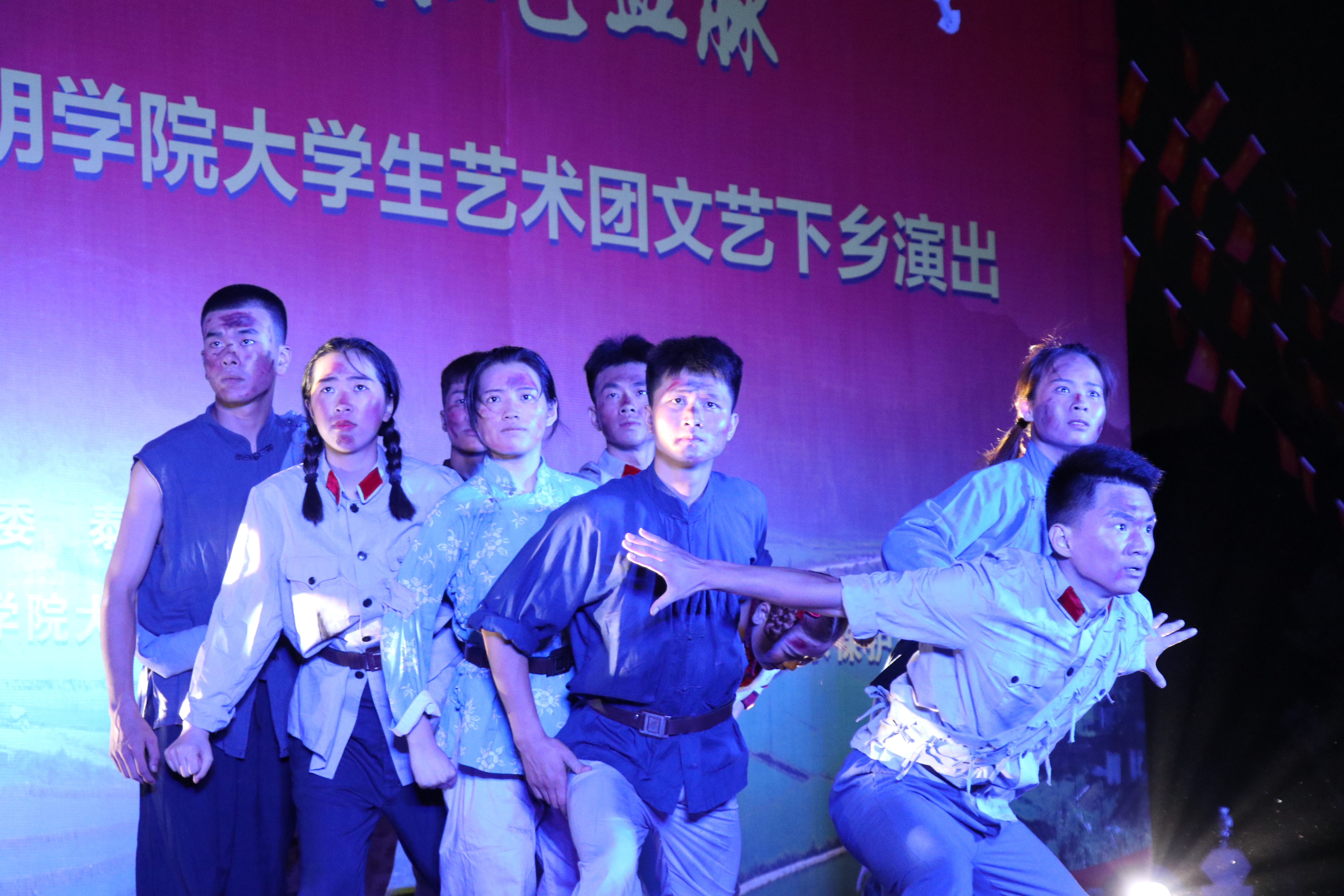 文艺演出下基层活动第二站来到永安市某部队驻地。实践队的志愿者们为到场的部队官兵献上了一场丰富多彩的晚会,为他们送上温暖的祝福。