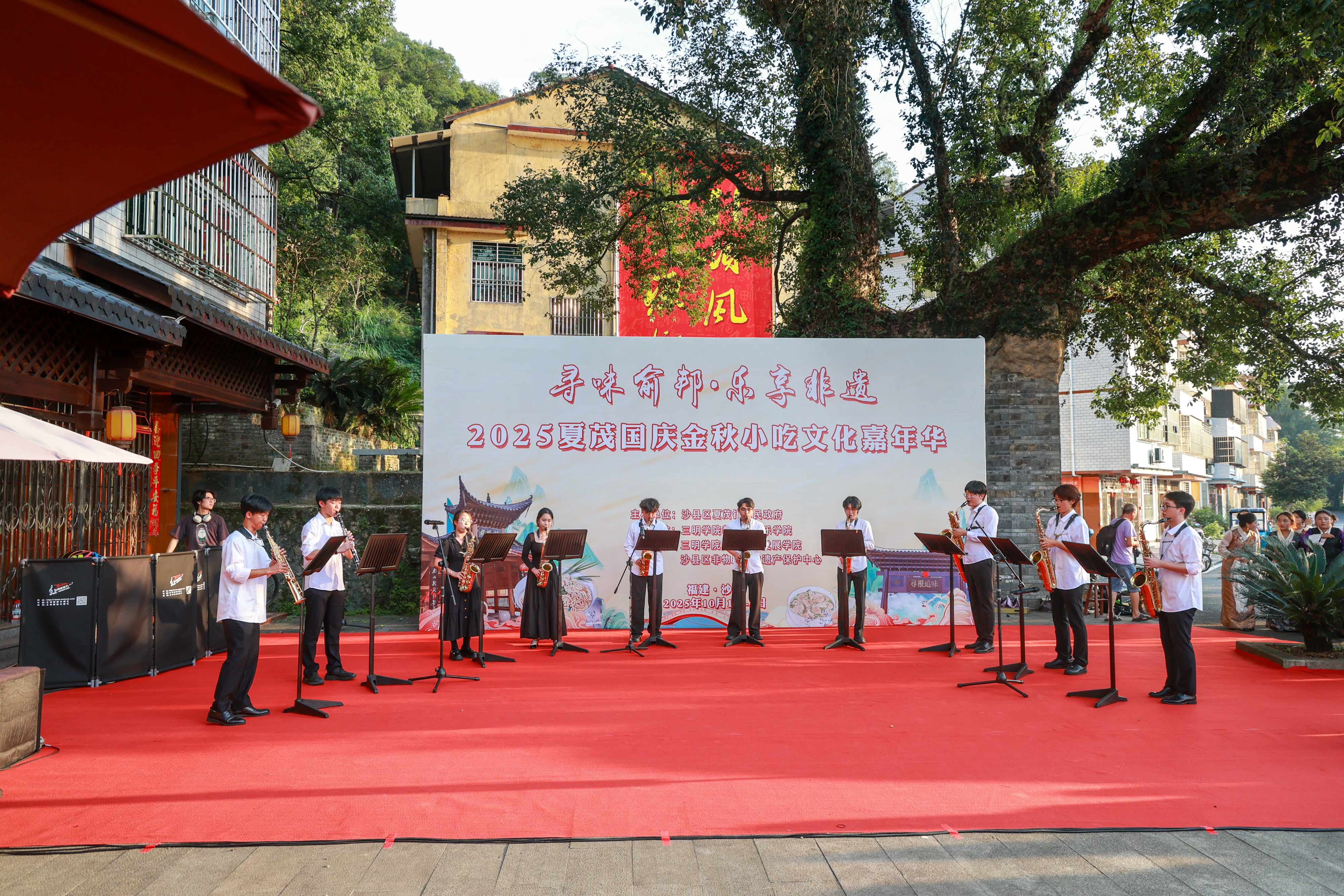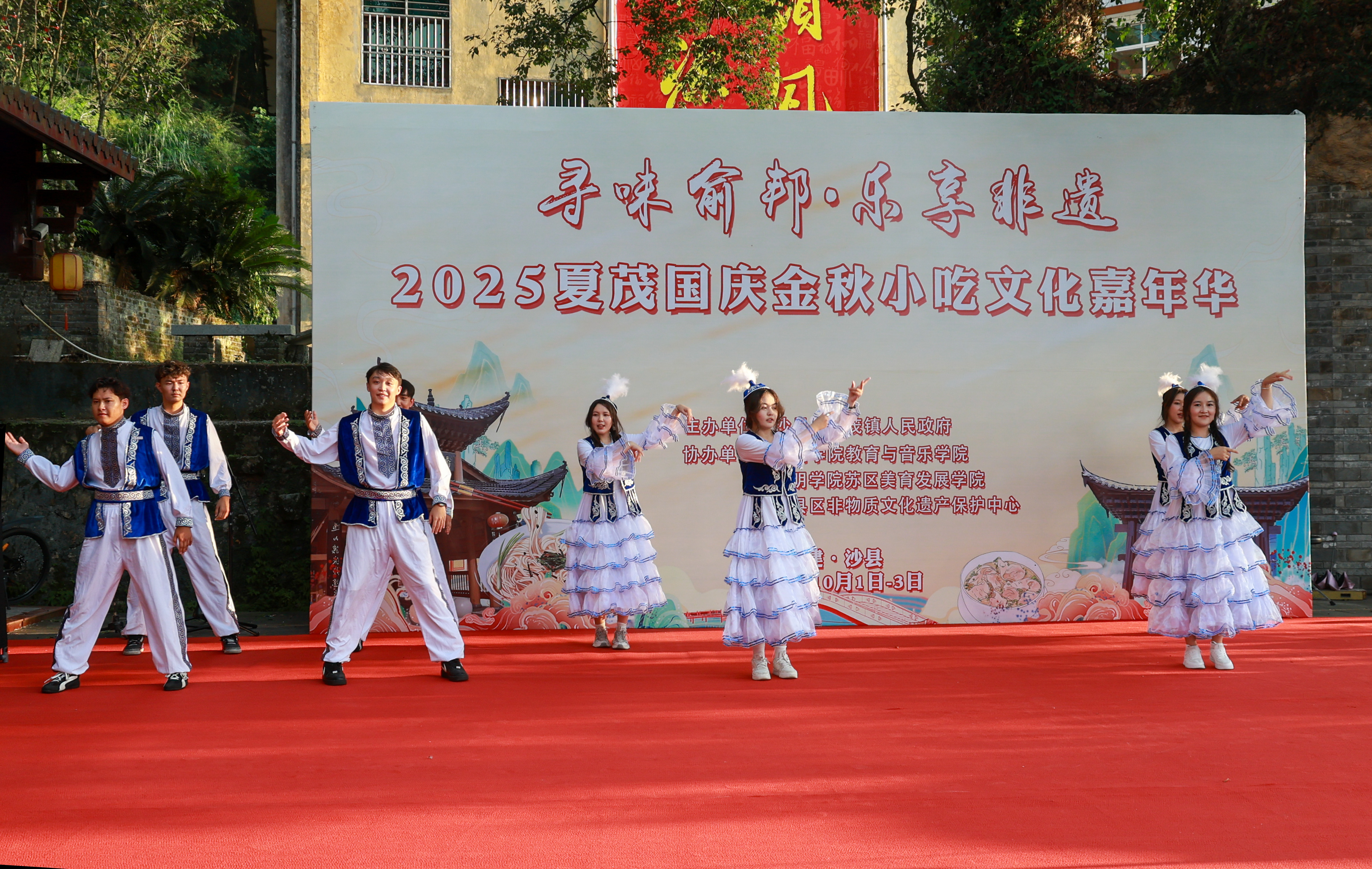 2025年10月1日下午,沙县区夏茂镇俞邦村小吃文化广场掌声阵阵,由夏茂镇人民政府主办,三明学院教育与音乐学院、苏区美育发展学院及区非遗保护中心共同协办的“寻味俞邦・乐享非遗——2025夏茂国庆金秋小吃文化嘉年华”文艺汇演成功举行。活动以文艺为媒,融合非遗文化与多民族艺术,为新中国成立76周年营造浓厚乡村喜庆氛围,成为校地合作助推乡村振兴的生动实践。