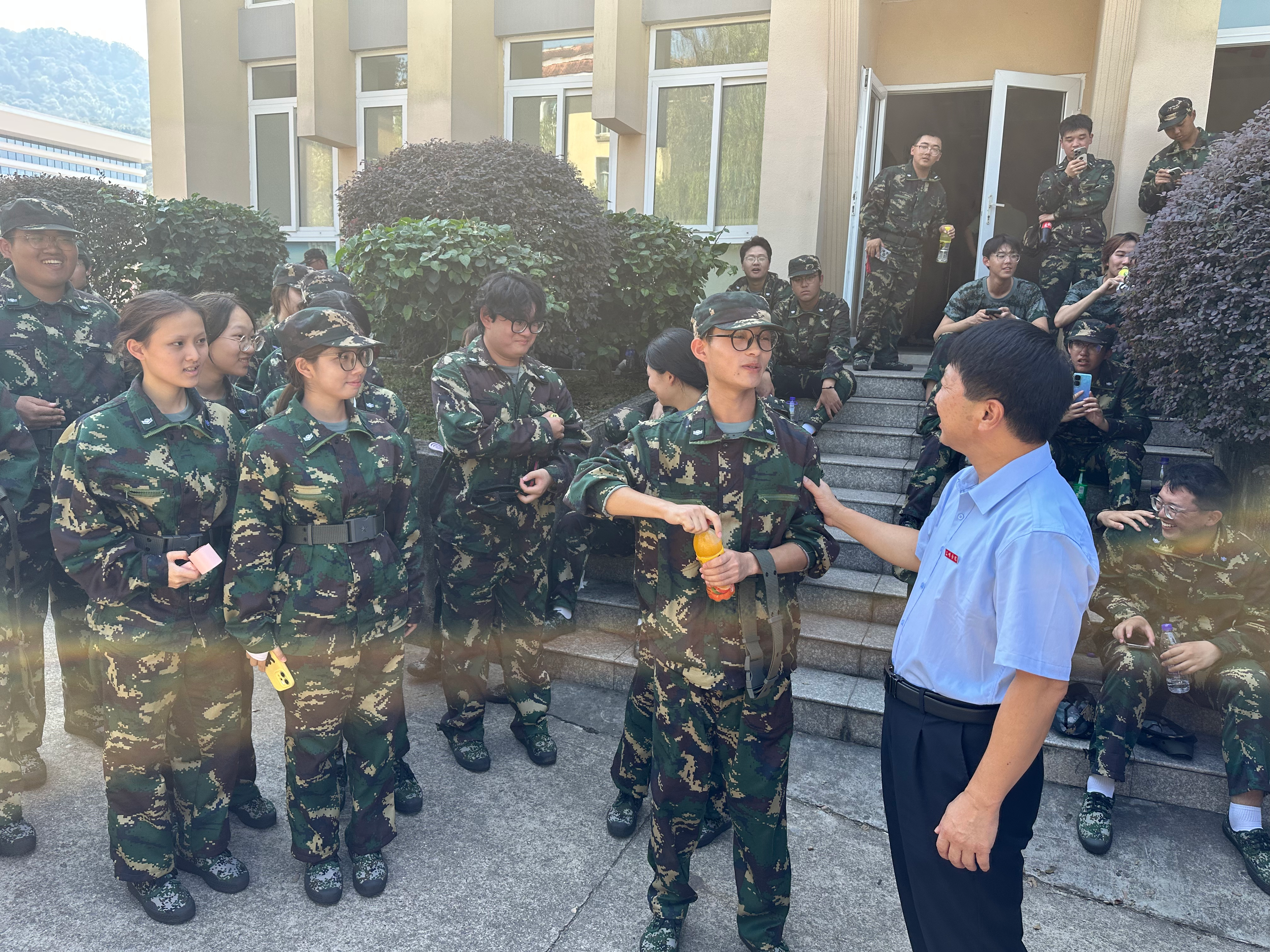 缪大旺副书记细致关心新生的生活保障,特别叮嘱同学们注意天气变化,及时调整着装,如有身体不适务必第一时间向教官或辅导员反映。