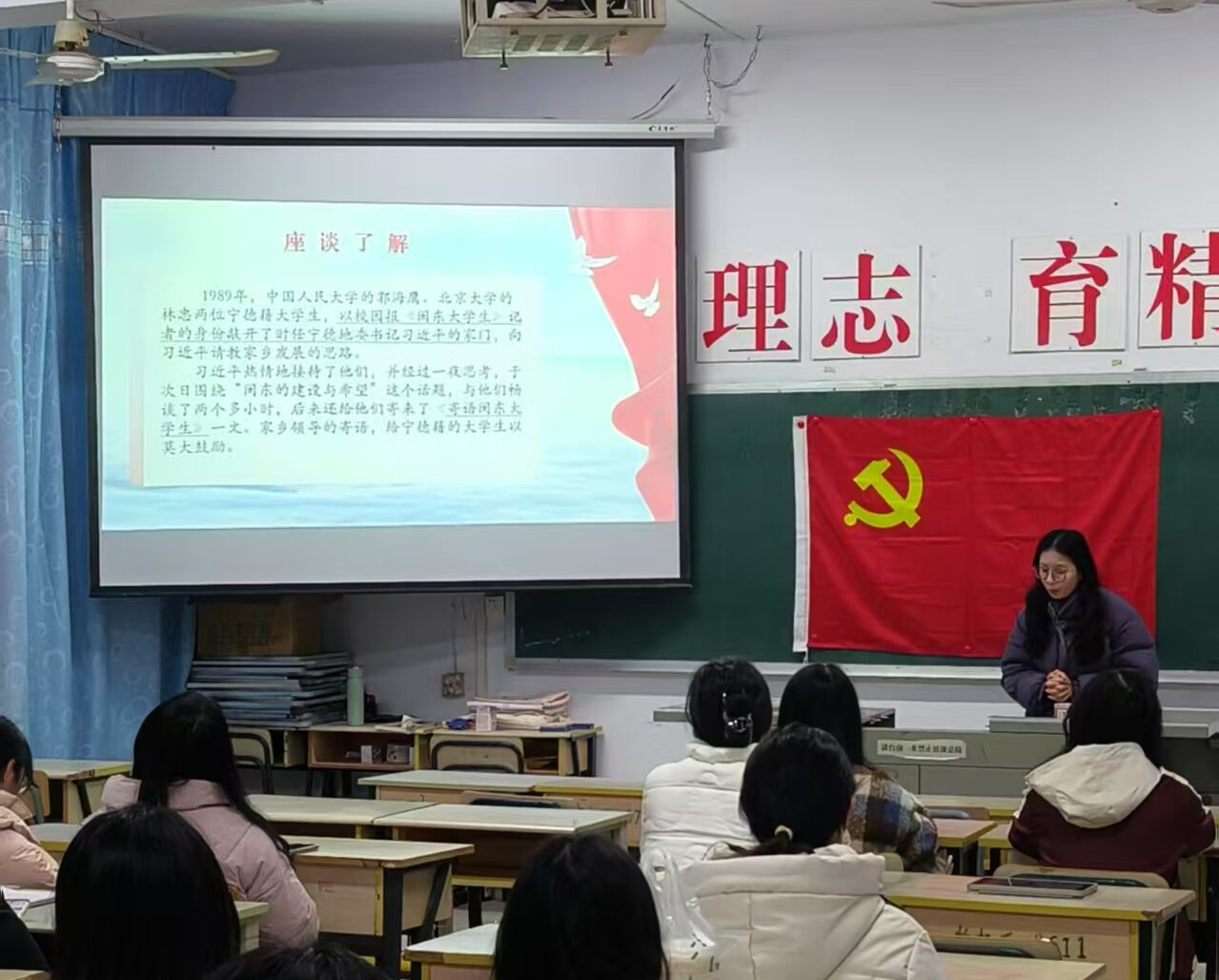 为厚植爱国主义情怀,教育与音乐学院小学教育专业学生党支部以“爱读书、读好书、善读书”为主线,聚焦红色读物,引导师范生学生党员坚定理想信念,传承红色基因,为未来扎根教育事业注入精神动能。2025年2月26日,在明德楼(一)324举办《习近平与大学生朋友们》(第二卷)读书分享会,会议由支部全体党员参加。
