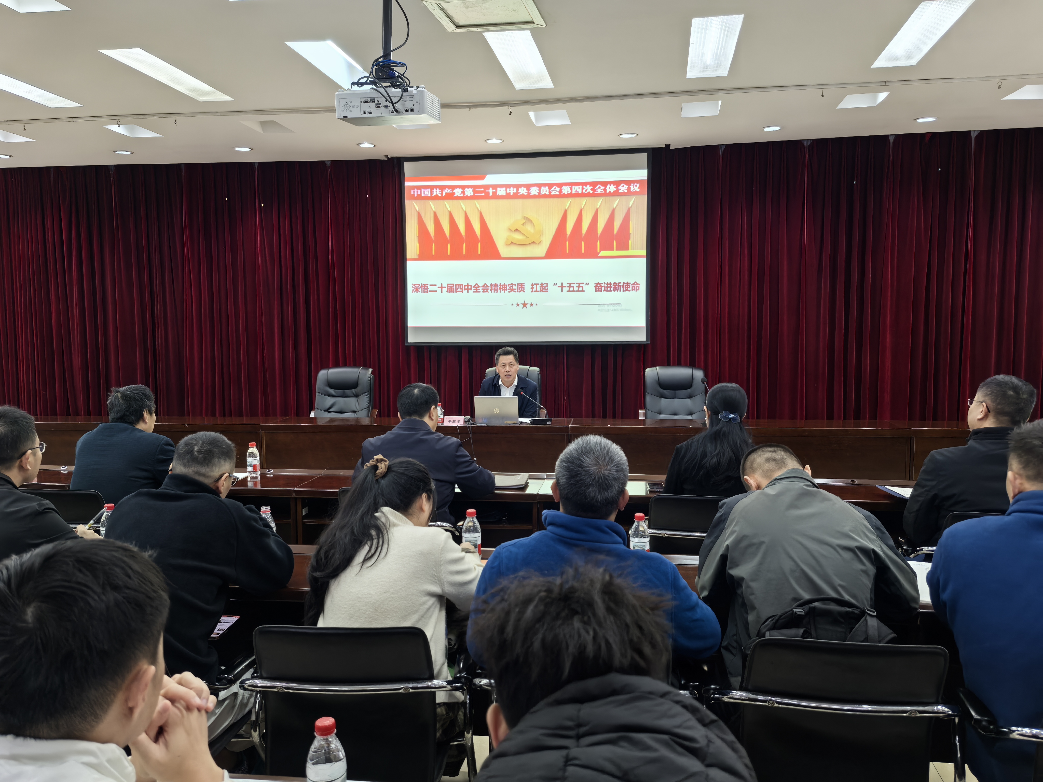 11月19日上午,校党委副书记李莉星在行政楼八楼会议室,为教育与音乐学院、体育与康养学院中层以上干部及联系师生党支部宣讲党的二十届四中全会精神。两个学院70余名师生参会,共同学习领会全会核心要义与实践要求。