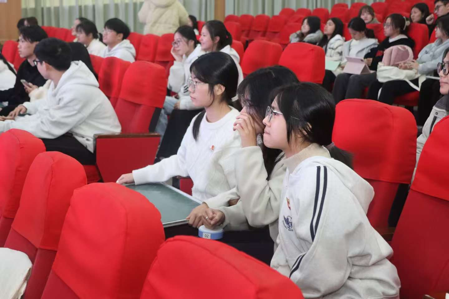 活动在庄重而热烈的氛围中拉开帷幕。马克思主义学院刘春明副教授首先作专题辅导报告,系统阐释党的二十届四中全会精神的核心要义,并围绕“大学生就业能力的提升与培养”进行深入浅出的解读,引导同学们将国家发展战略与个人成长规划紧密结合,现场反响热烈。随后,优秀学生党员代表谢妍琪、吴礼晗结合自身学习与实践经历,分享了心得体会,展现了青年党员在理论熏陶下的成长与思考,发挥了良好的朋辈引领作用。