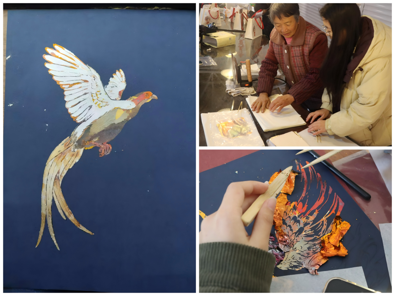2026年1月19日至23日,三明学院“栖羽金窗”实践团队深入紫云村,跟随县级非遗传承人罗全娣,系统学习了从定线稿、勾线、刷胶到贴金箔、彩绘上色及面漆保护的全流程,完整复现了“金碧辉映”的古典工艺。为推动技艺与生态文化深度融合,团队以明溪生态标志“白鹇”为主题,通过野外观察与写生提炼,将白鹇的动态美转化为金箔艺术语言,创作出六幅融合传统技法与地域叙事的新作。这一“非遗+生态”的实践,突破了传统花鸟题材的局限,在保护中融入生态意识,为古老技艺注入了当代生命力。