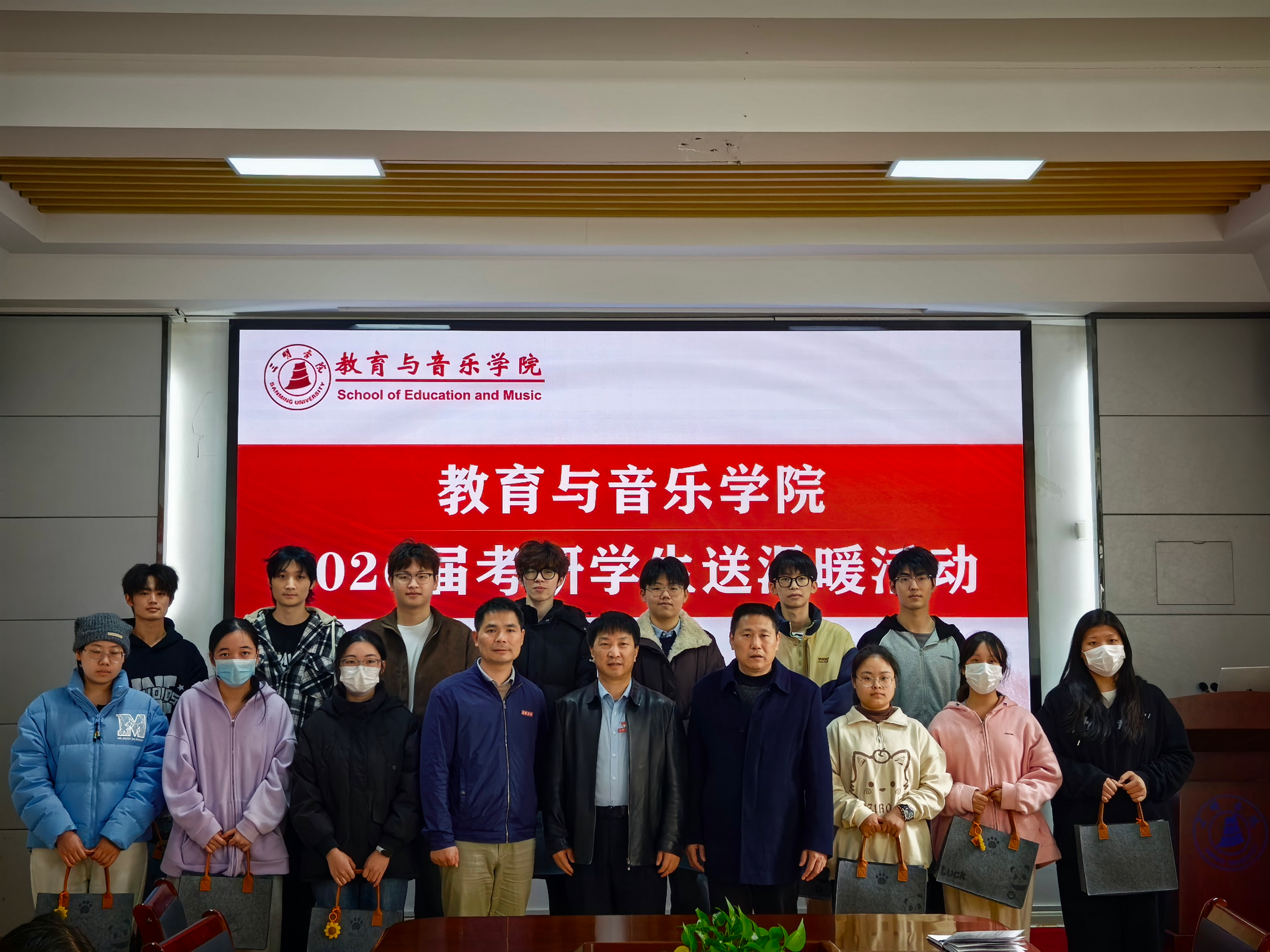 2025年全国硕士研究生招生考试进入倒计时,为鼓舞备考学子士气,传递学院温暖关怀,营造积极向上的学习氛围,教育与音乐学院于12月12日在明德楼(一)会议室组织开展了“温情暖冬,研路同行”考研送温暖主题活动,为正在紧张备考的学子送上慰问与祝福。