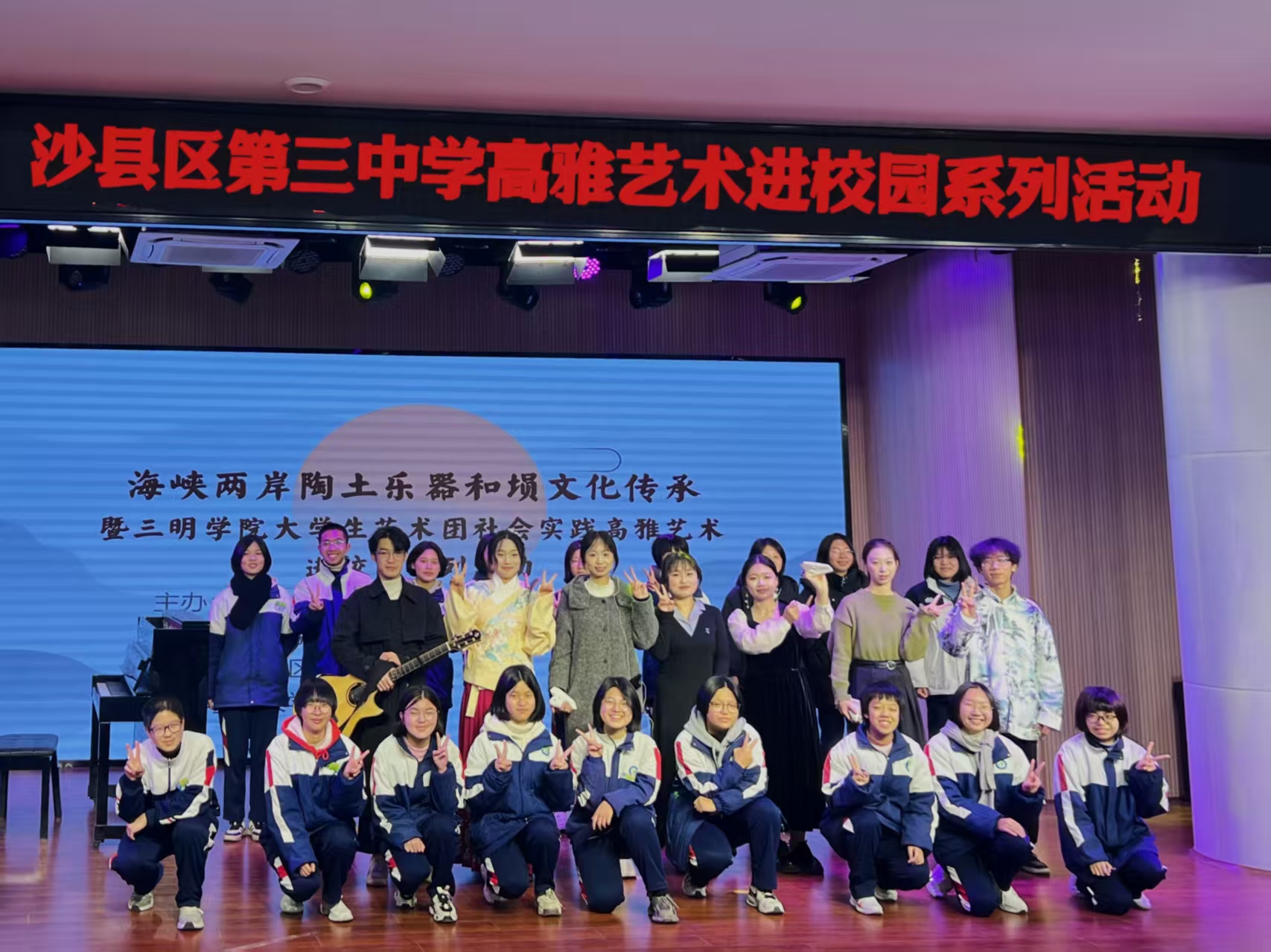 此次高雅艺术进校园活动不仅为沙县三中的师生带来丰富的文化体验,也促进了三明学院与沙县第三中学之间的校际合作。双方共同探索了传统音乐文化在高等教育和基础教育中一体化传承的新路径,为推动地方教育事业高质量发展贡献了力量。展望未来,三明学院大学生艺术团陶韵社将持续开展传统音乐文化的交流活动,扎根三明市红色基地,深入更多学校和社区,传承和弘扬中华优秀传统文化,让更多人了解和喜爱陶笛与埙等传统乐器。