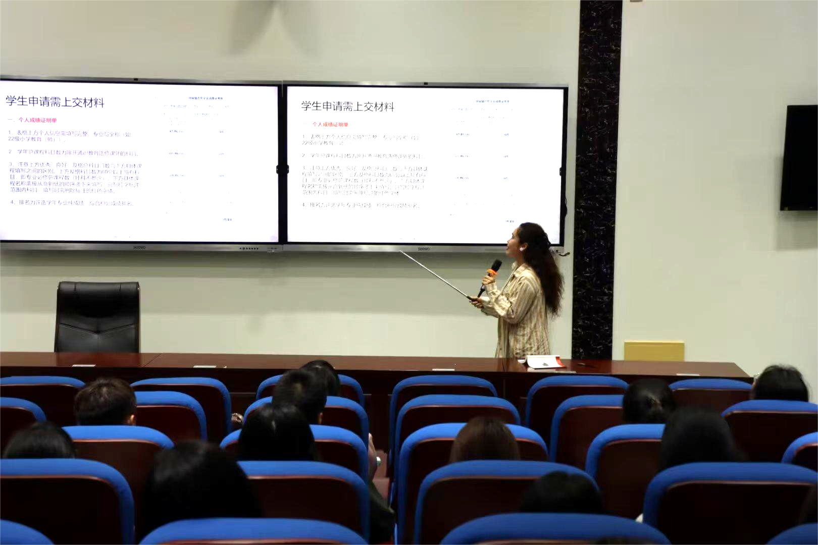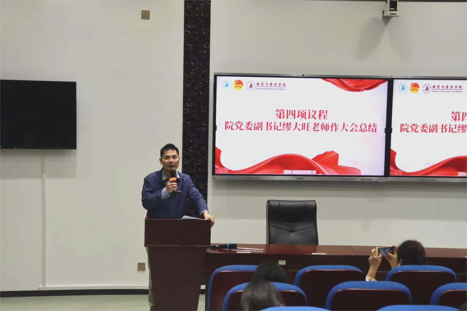 10月27日晚,教育与音乐学院在靖远楼101报告厅召开学生高质量发展推进会暨学风建设推进会。会议由学院党委副书记缪大旺主持,全体辅导员及申请国家助学金的学生参加。