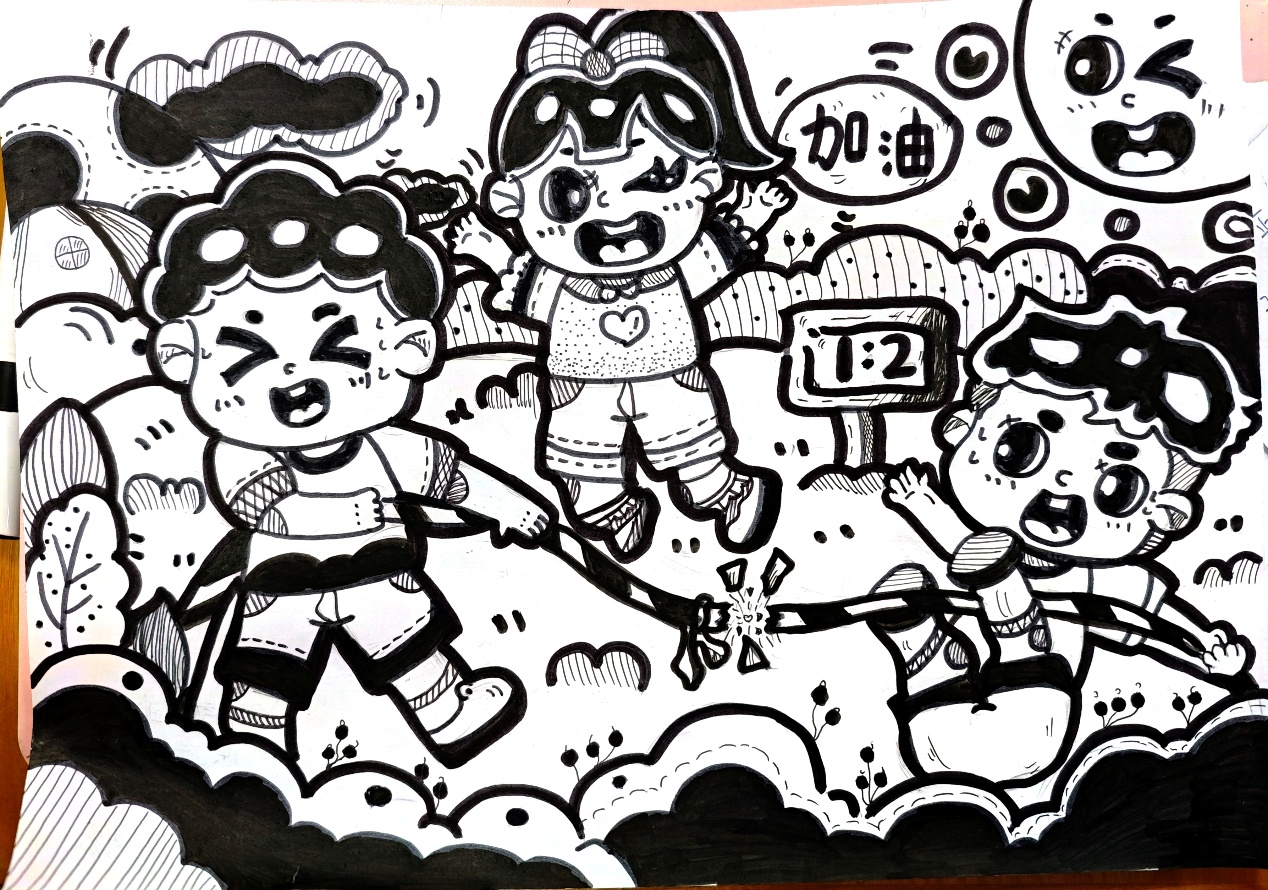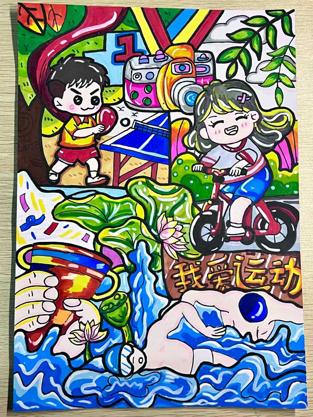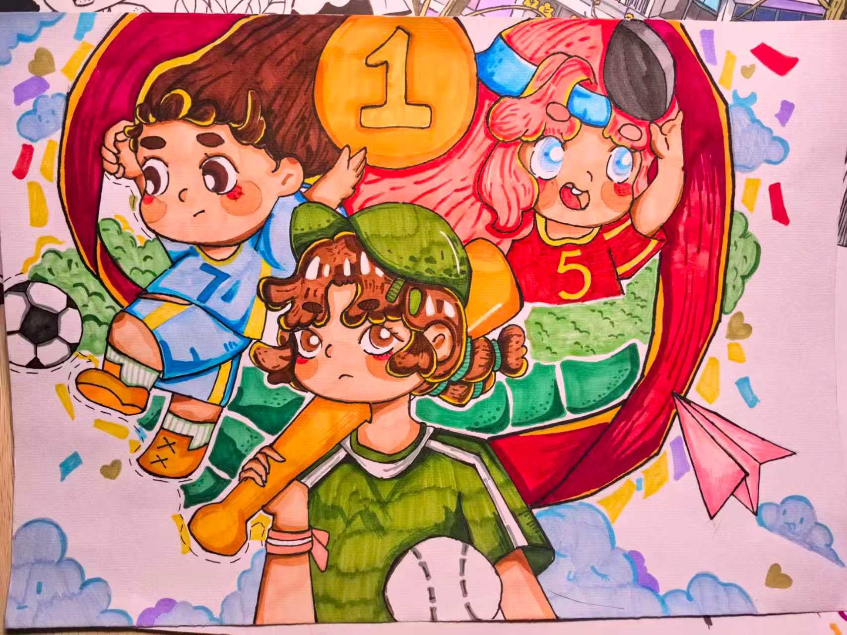 活动设置“海报燃动,创想无界”与“简动未来,笔尖跃动”两个赛道,推动体育精神与艺术创作的有机结合。手绘海报赛道鼓励学生运用漫画、插画等形式,定格赛场拼搏瞬间;简笔画赛道引导学生以简洁笔触勾勒运动活力。学生自主筹备创作材料并构思内容,在艺术表达中提升审美素养,在动手实践中锻炼综合能力。
