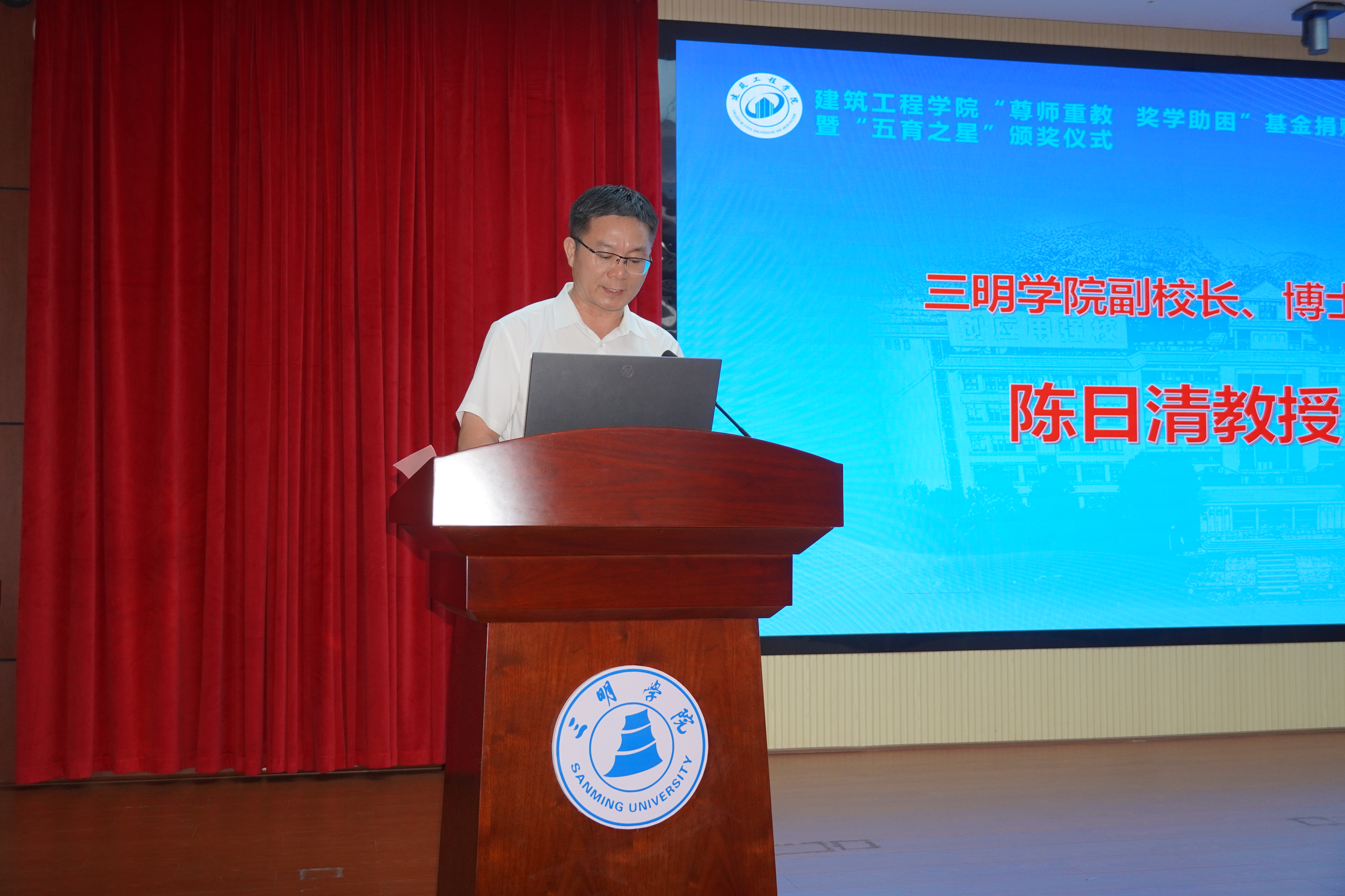 为深化产教融合,凝聚社会与校友力量支持学校发展,切实助力教师成长与学生培养,10月17日,三明学院校友会主办、建筑工程学院校友分会承办的“尊师重教、奖学助困”基金捐赠仪式在三明学院第三会议室举行。三明学院副校长陈日清教授、校统战部部长、校友会秘书长龚榕容、闽晟集团有限公司叶德福董事长、闽晟集团有限公司副总裁、建筑行业校友分会会长李伟,建筑工程学院党政领导、系主任、校友代表、师生代表等200余人参加活动。