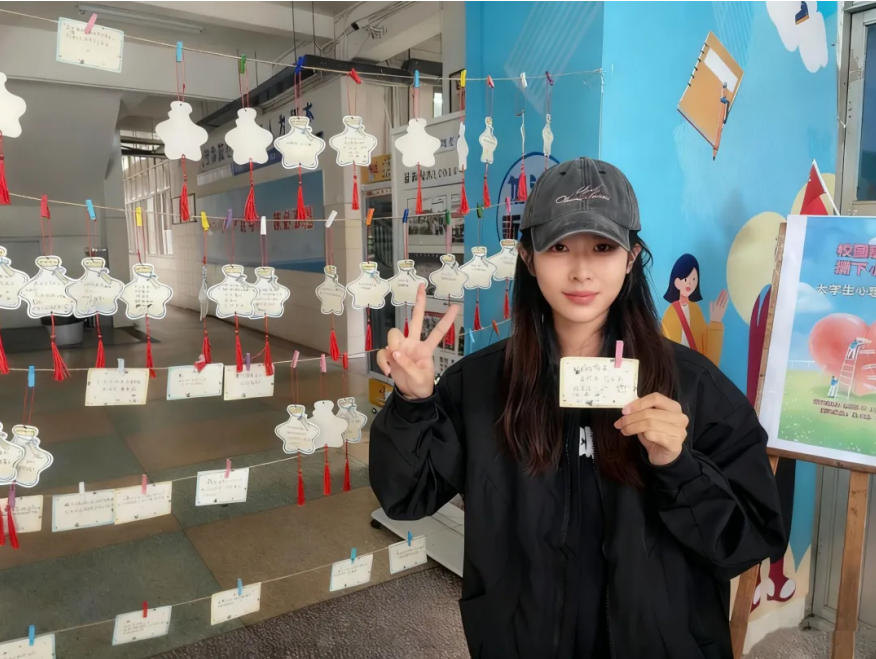 活动无需正襟危坐,不必袒露心声,学子们课间路过即可参与。大家可以自由挑选触动心灵的暖心话语卡片带走,也能写下专属暖心寄语贴上墙面,将温暖接力传递。参与活动的同学只需与拿走的卡片合影,便可现场领取精美书签一份。