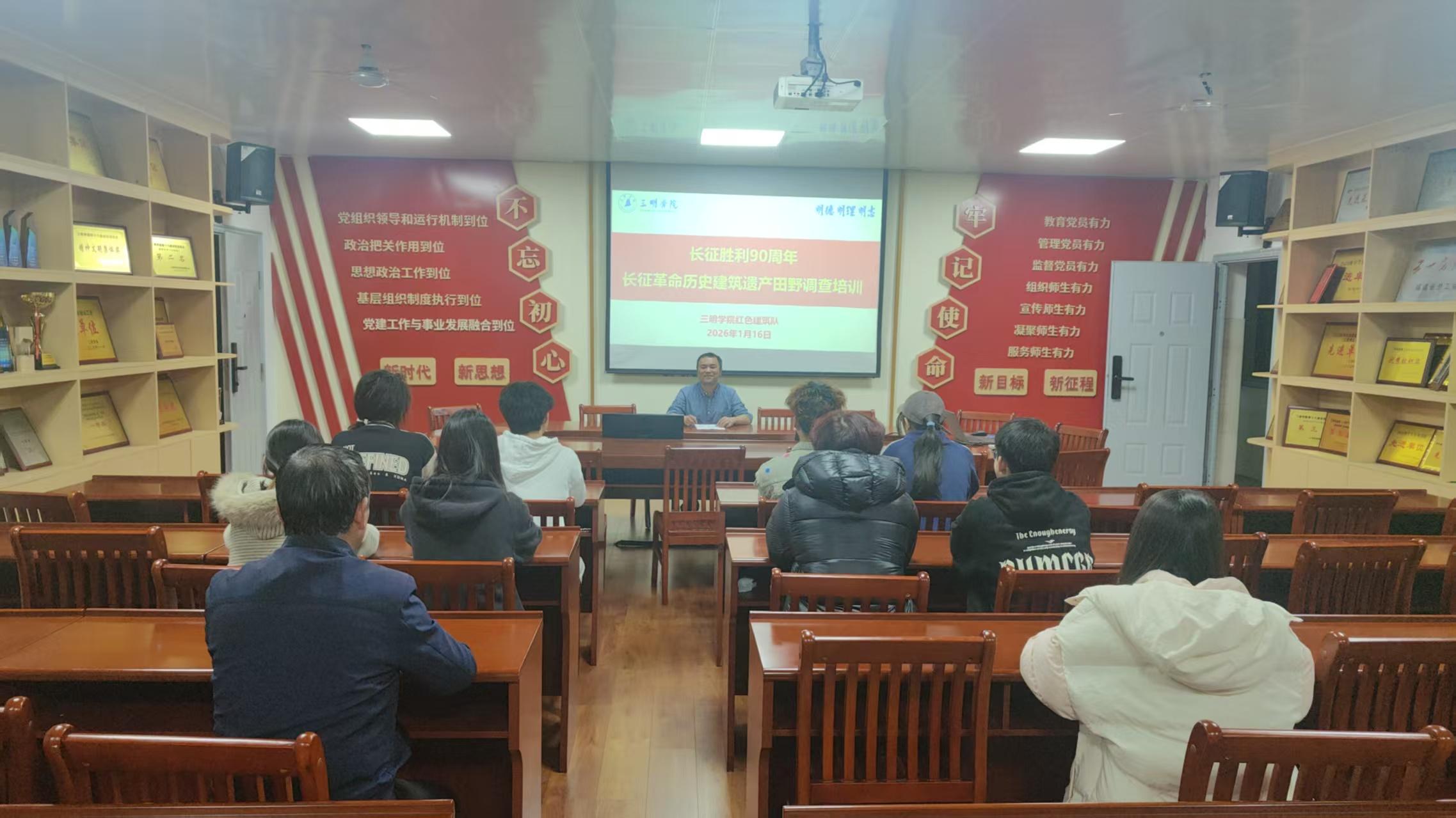 为弘扬伟大长征精神,传承红色基因,深入挖掘长征沿线革命历史建筑遗产的时代价值,保障寒假社会实践活动规范有序进行,1月16日-17日,三明学院红色建筑队在校内组织开展行前专项培训。